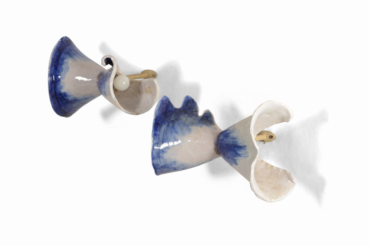 Struttura in metallo laccato e diffusori in ceramica smaltata.