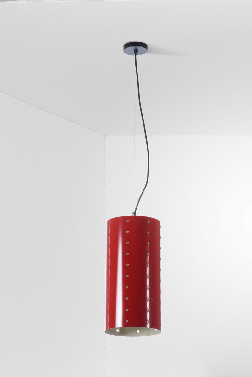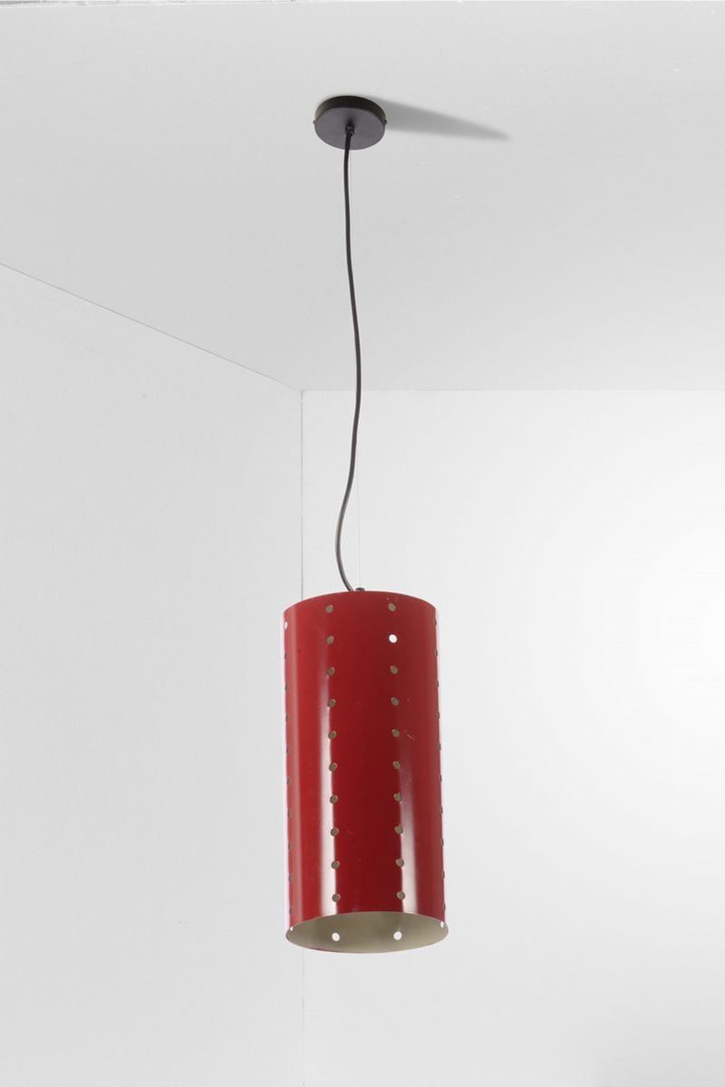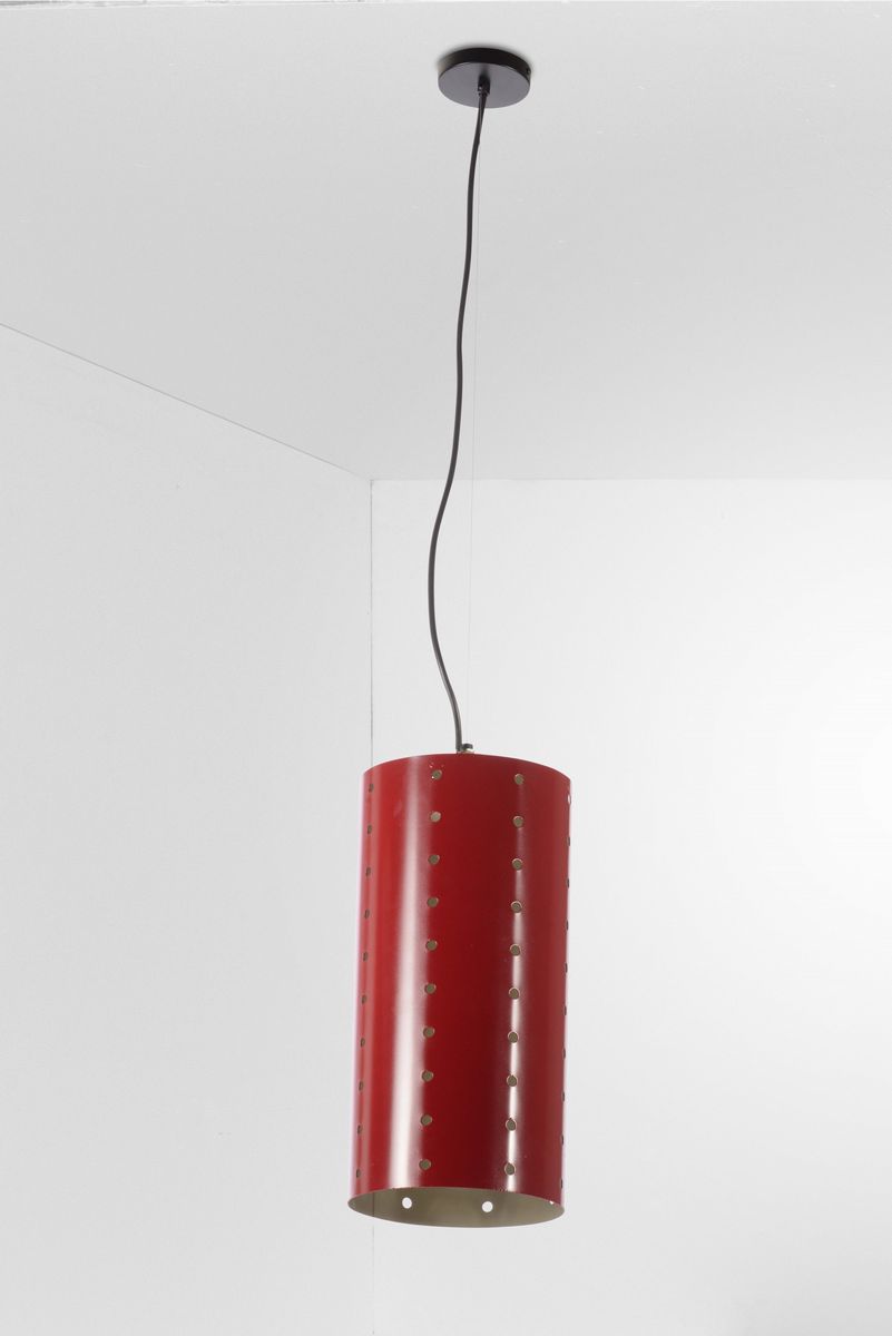 Quattro lampade a sospensione ad altezza regolabile con diffusore in metallo laccato traforato.