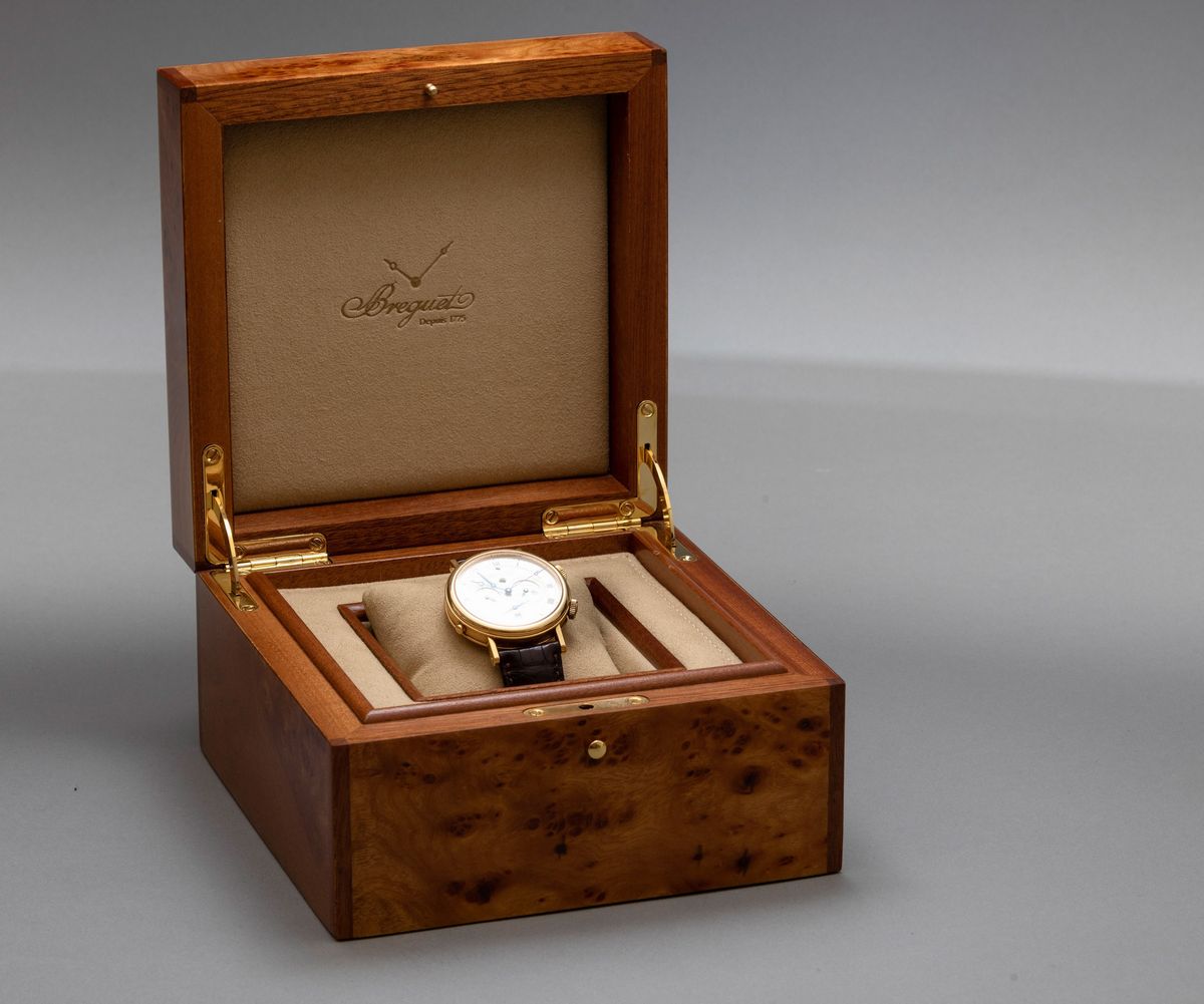 BREGUET - Réveil du Tsar, prestigioso orologio sveglia in oro 18k con doppio fuso orario, datario e riserva di marcia. Quadrante guilloché, carica automatica e fondello a vista