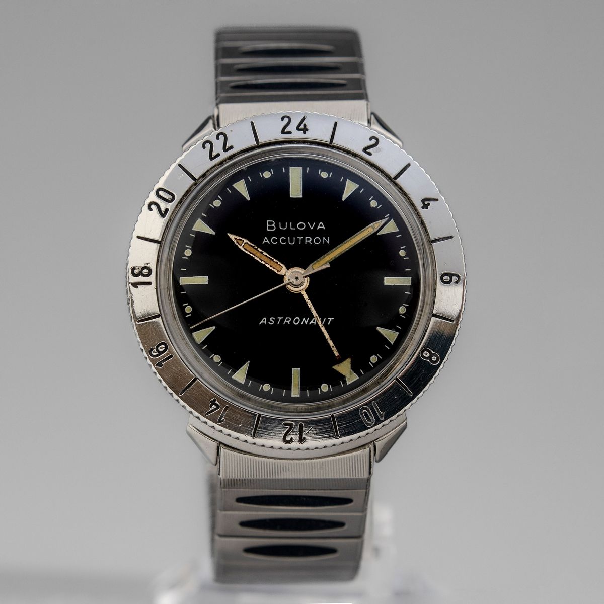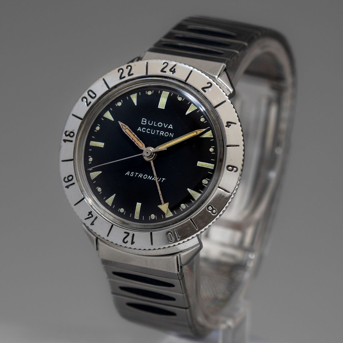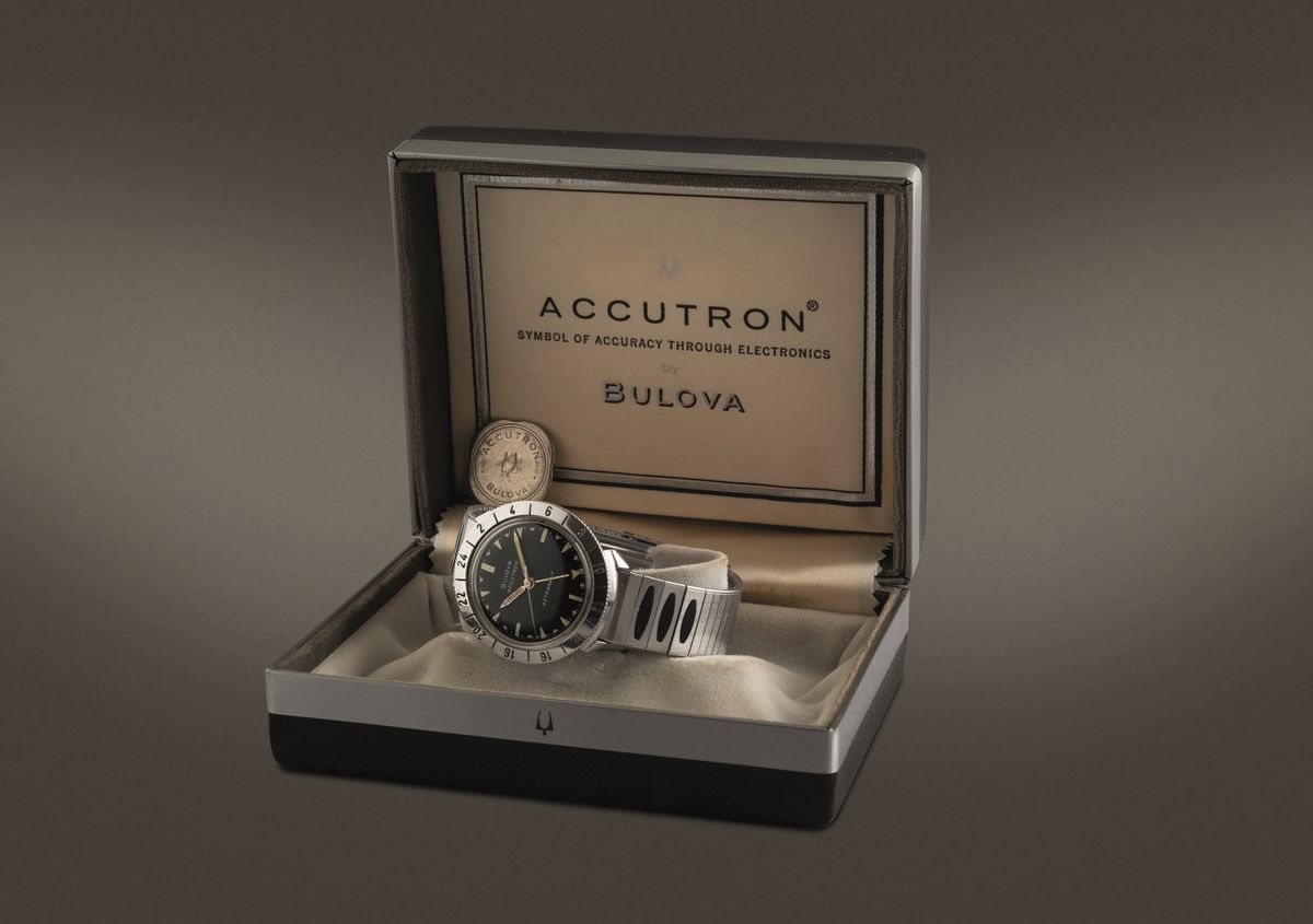 BULOVA - Raro Accutron Astronaut, con cassa rotonda in acciaio, movimentoal quarzo a diapason astuccio e bracciale originali