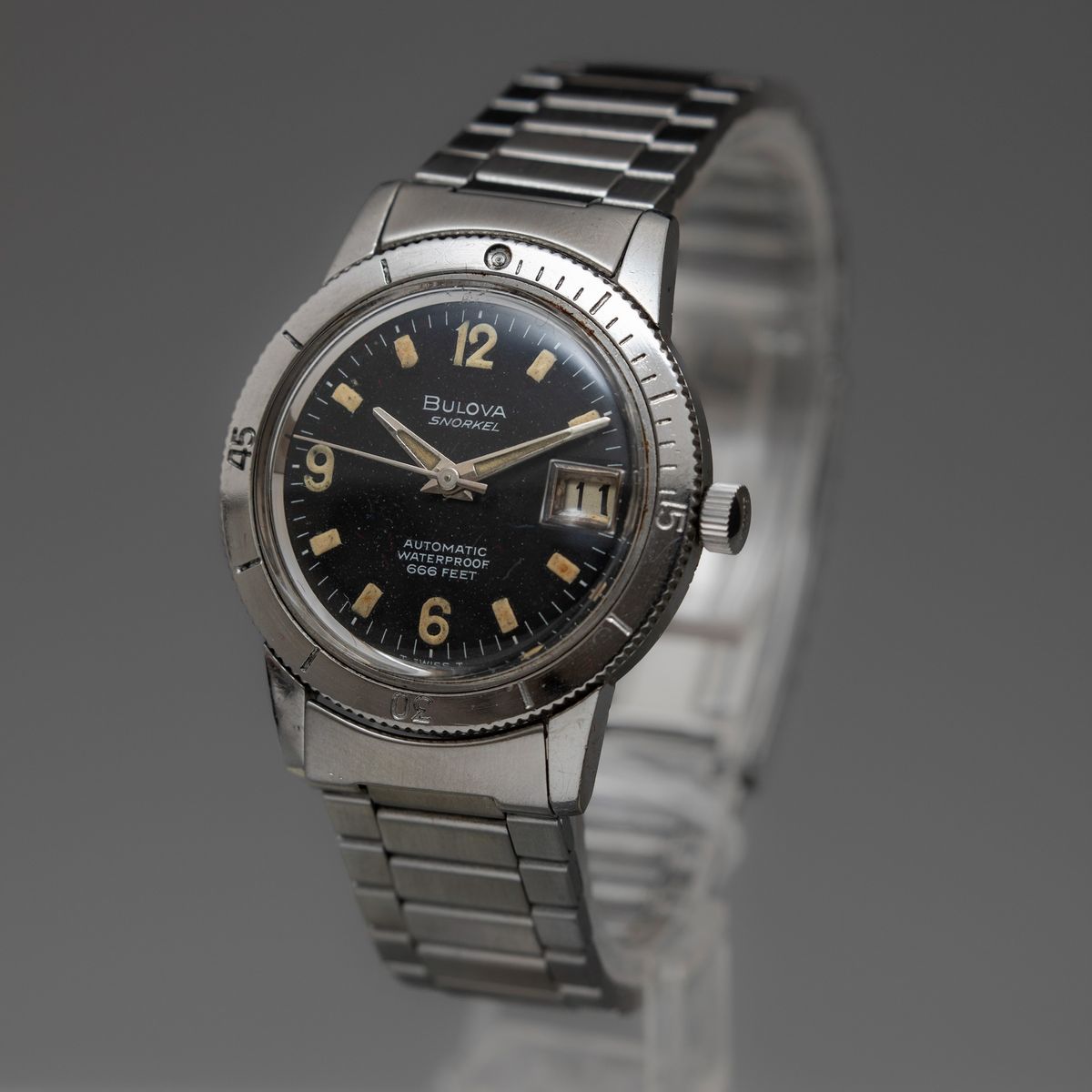 BULOVA - Snorkel, diver in acciaio automatico con datario, quadrante nero al trizio e bracciale originale