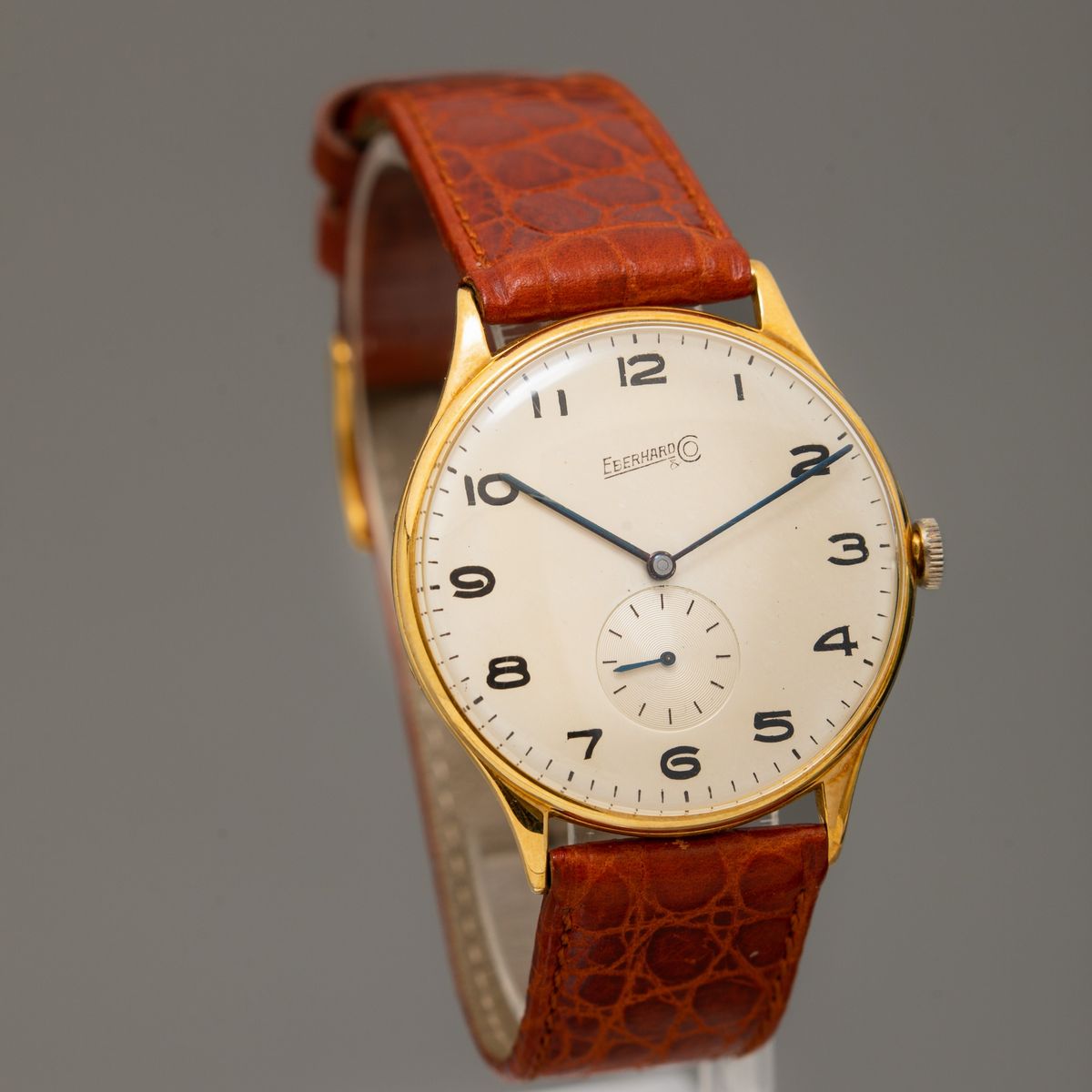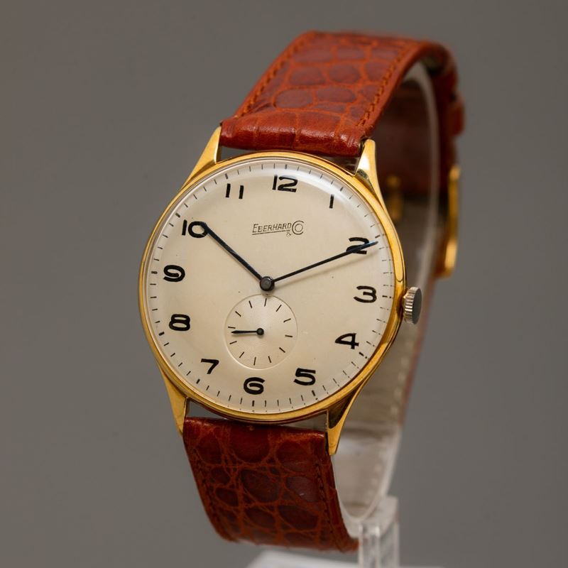 EBERHARD - Oversize carica manuale in oro giallo 18k con cassa a cerniera, numeri Arabi e piccoli secondi al sei
