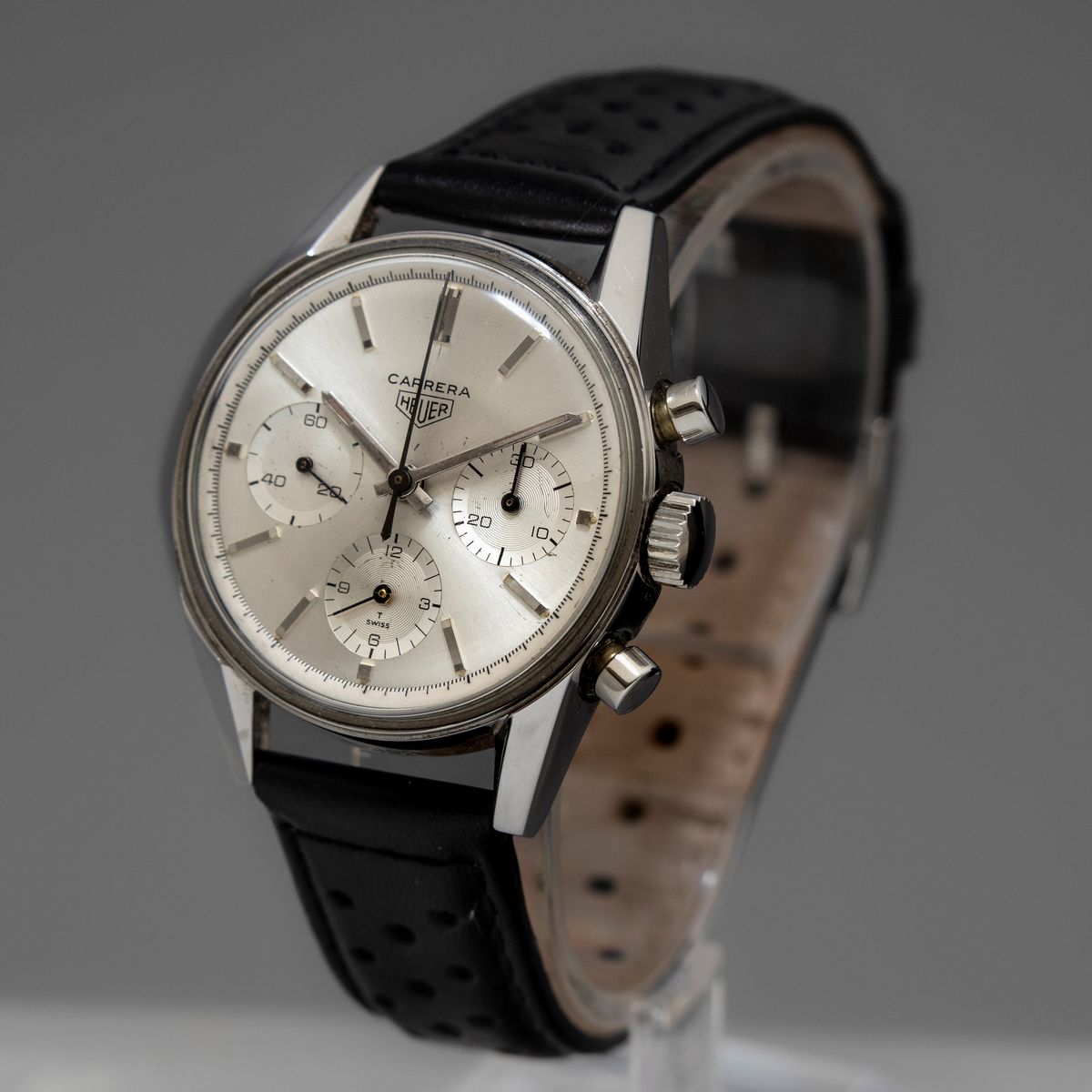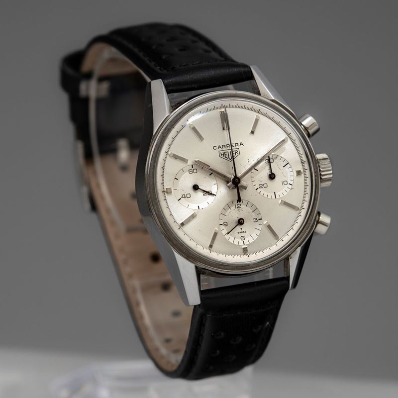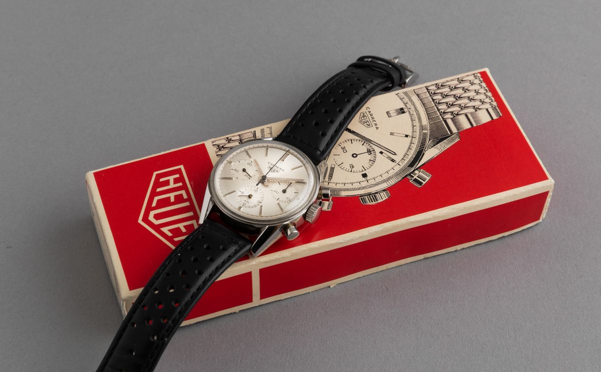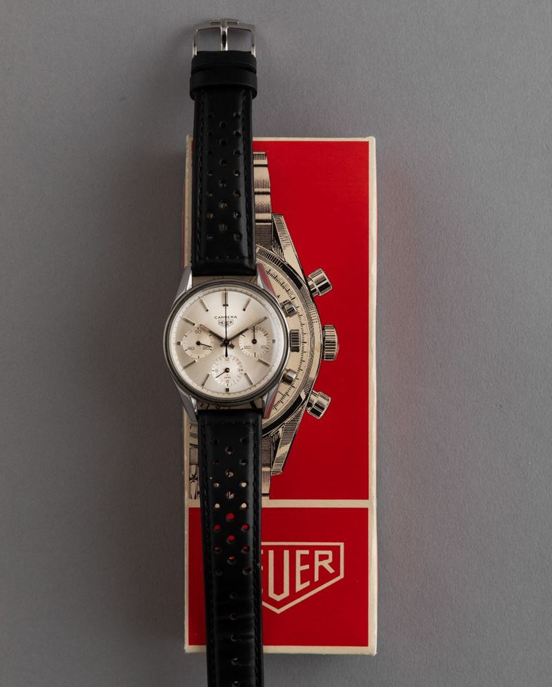 HEUER - Raro Carrera ref. 2447S in acciaio, cronografo a carica manuale con astuccio di cartone originale