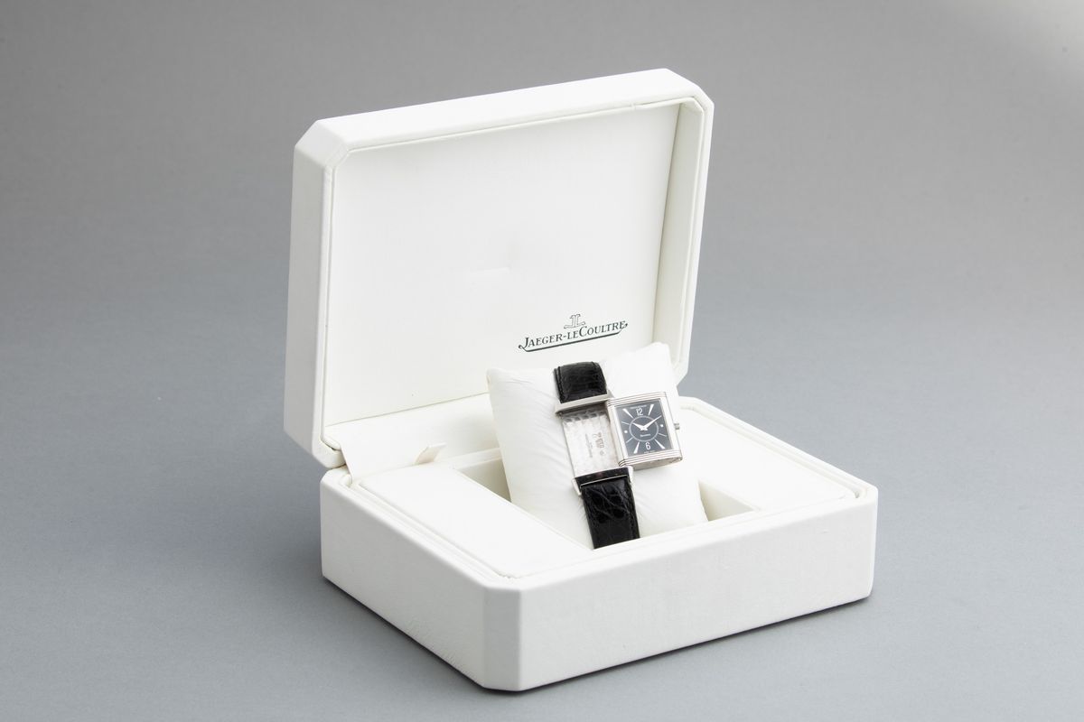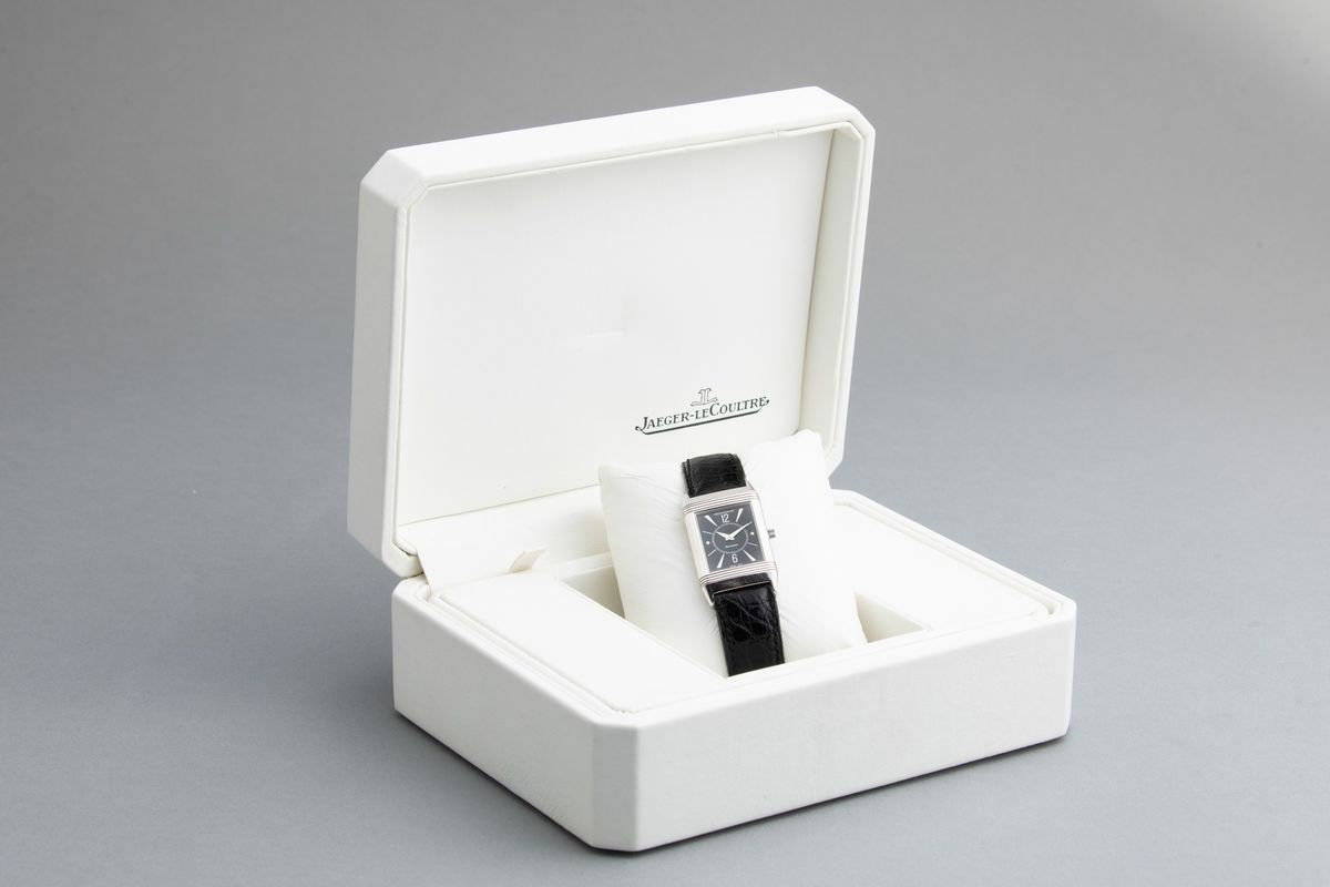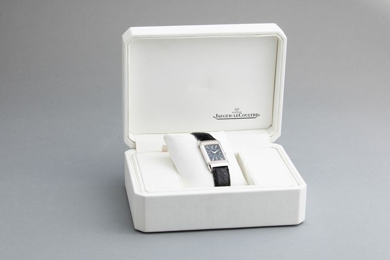 JAEGER LE COULTRE - Reverso in oro bianco 18k misura media carica manuale con incisione sul retro. Accompagnato da astuccio [..]