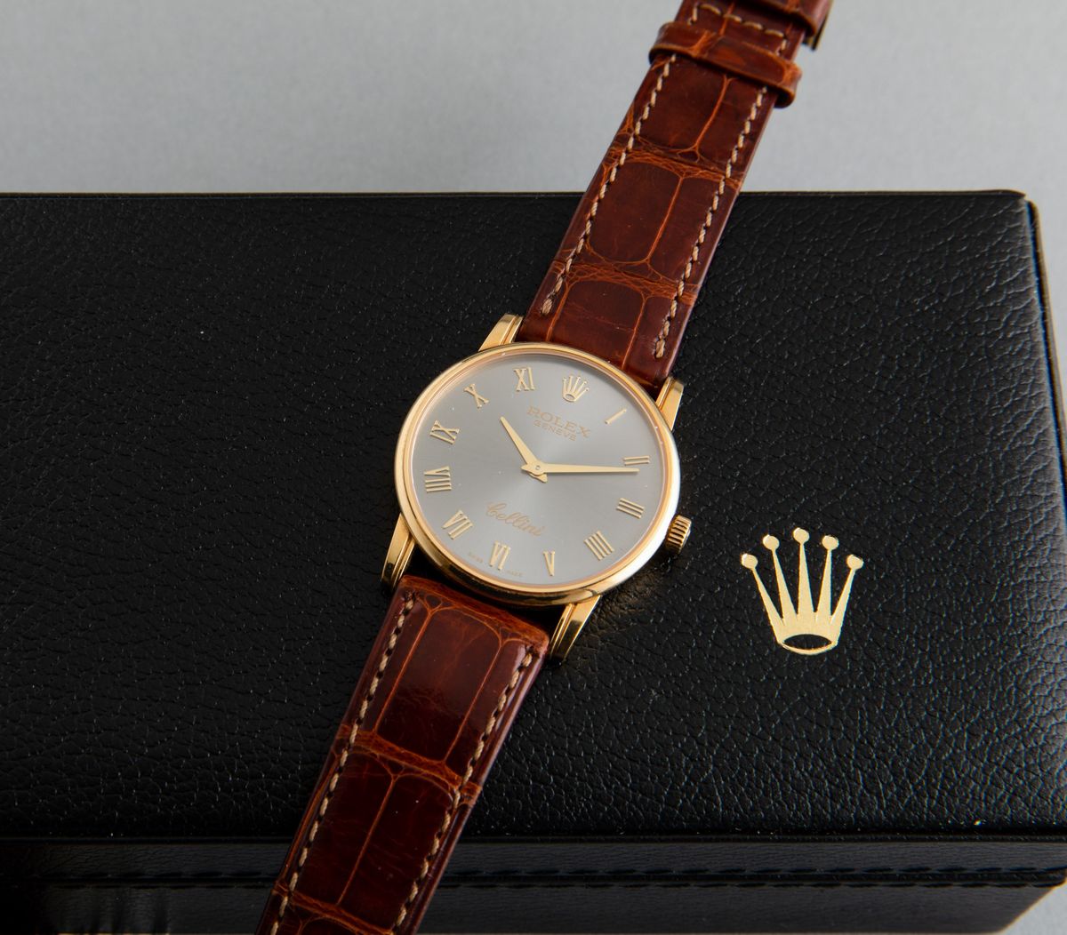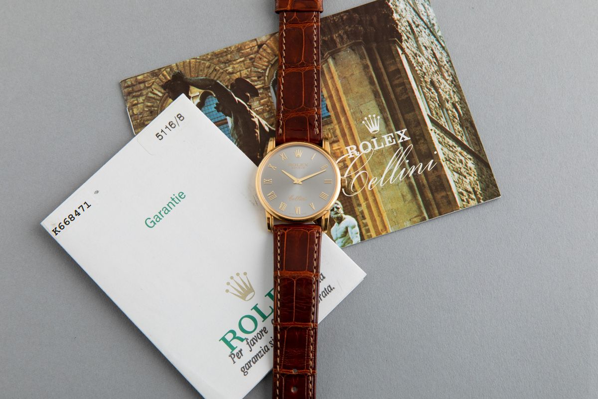 ROLEX - Elegante Cellini ref 5116, carica manuale con quadrante antracite e numeri Romani applicati. Accompagnato da astuccio [..]