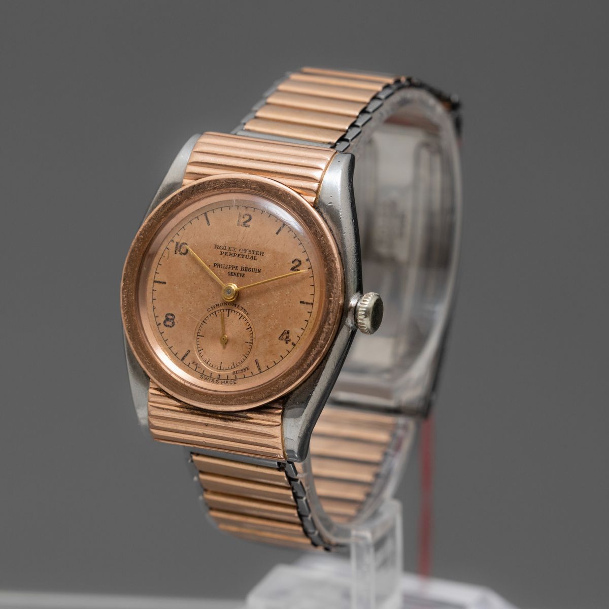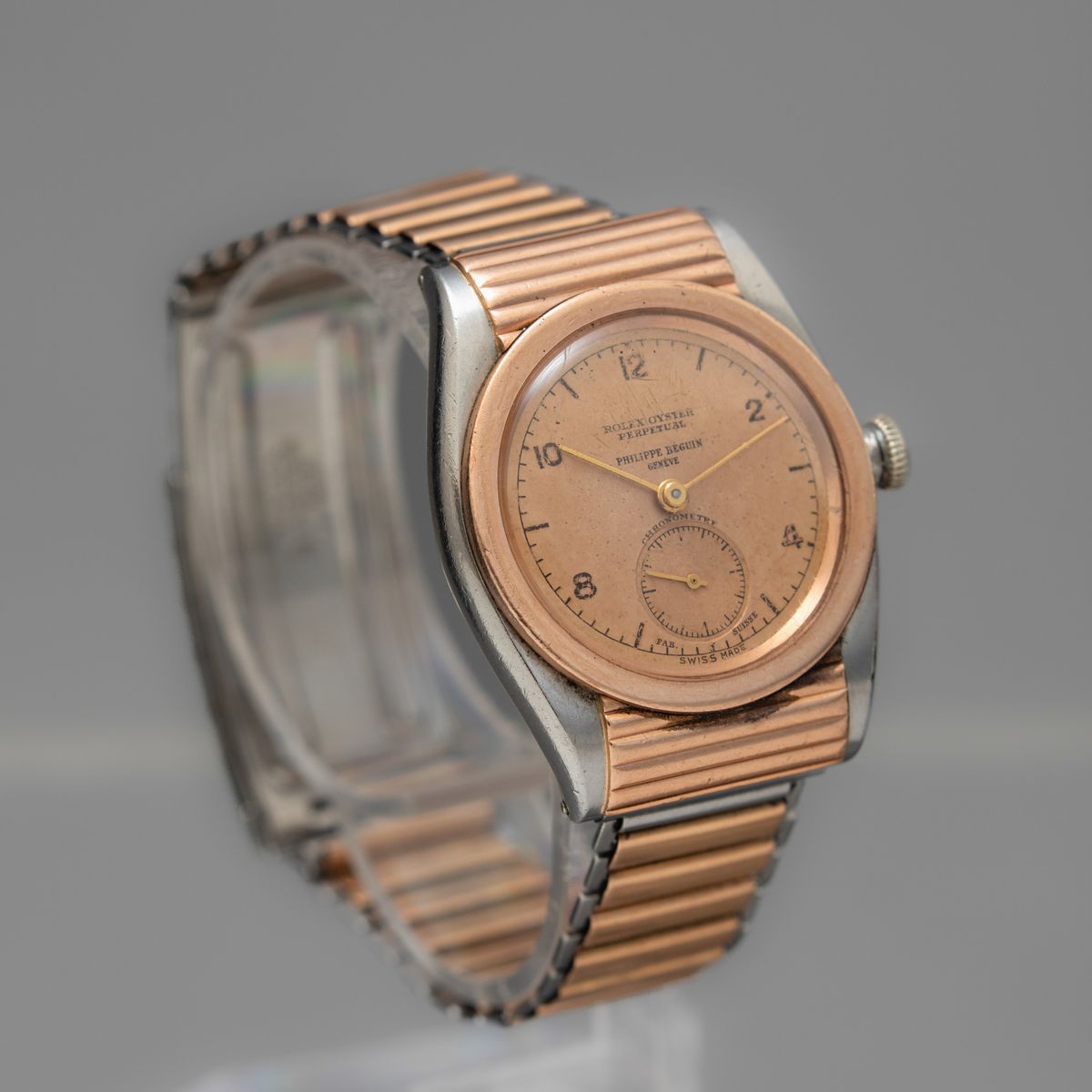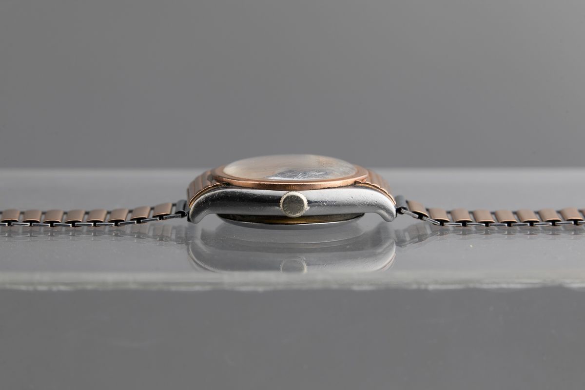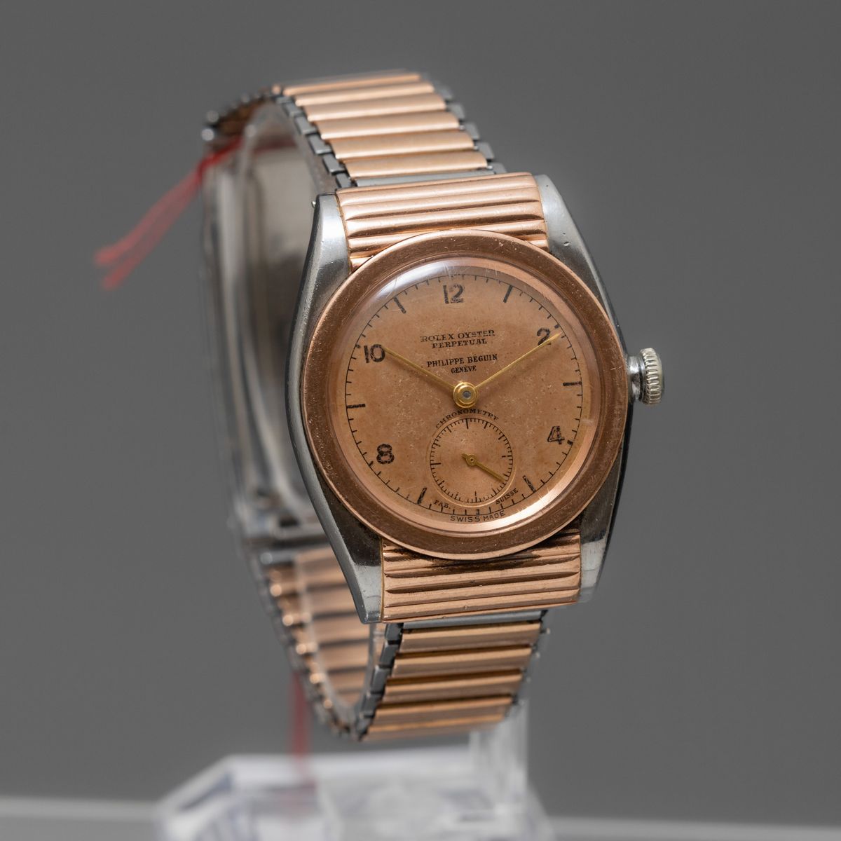 ROLEX - Ovetto con anse Cachè acciaio e oro rosa 18k con bracciale Bamboo e dedica sul quadrante. Orologio con fondello [..]