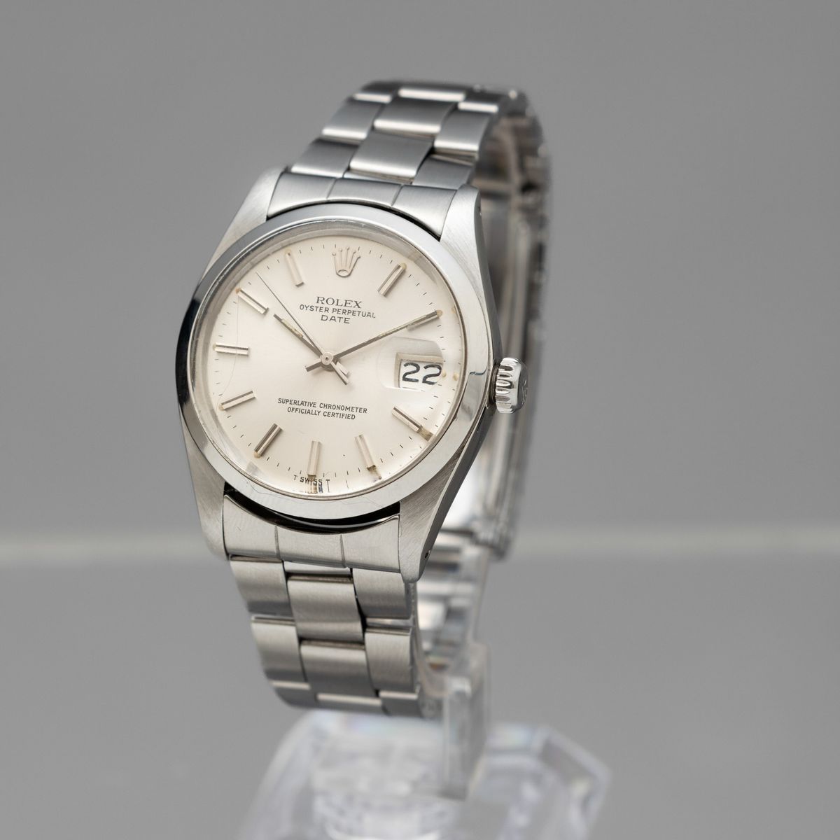 ROLEX - Oyster Perpetual Date ref 1500 in acciaio con ghiera liscia, vetro plastica, automatico.