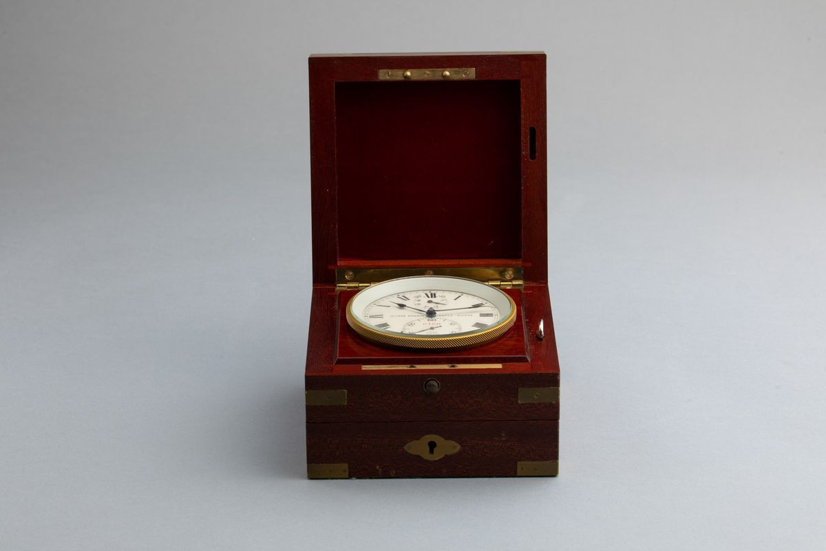 Il cronometro da marina nasce a metà del Settecento dalla necessità di trovare la longitudine in mare. Occorreva confrontare l’ora di un luogo di cui si conosceva la posizione, come ad esempio il porto di partenza, con l’ora di bordo. Dalla differenza tra i due orari si calcolava la longitudine in gradi. Per ruotare di 360° la terra impiega 24 ore, si sposta quindi 15° ogni ora. Se la differenza tra l’orario di partenza e quello di bordo era un’ora , si sapeva che la nave si era spostata dal porto 15° verso oriente o occidente. Per eseguire tutti questi calcoli occorreva un orologio estremamente affidabile e preciso anche in difficili condizioni di mare.