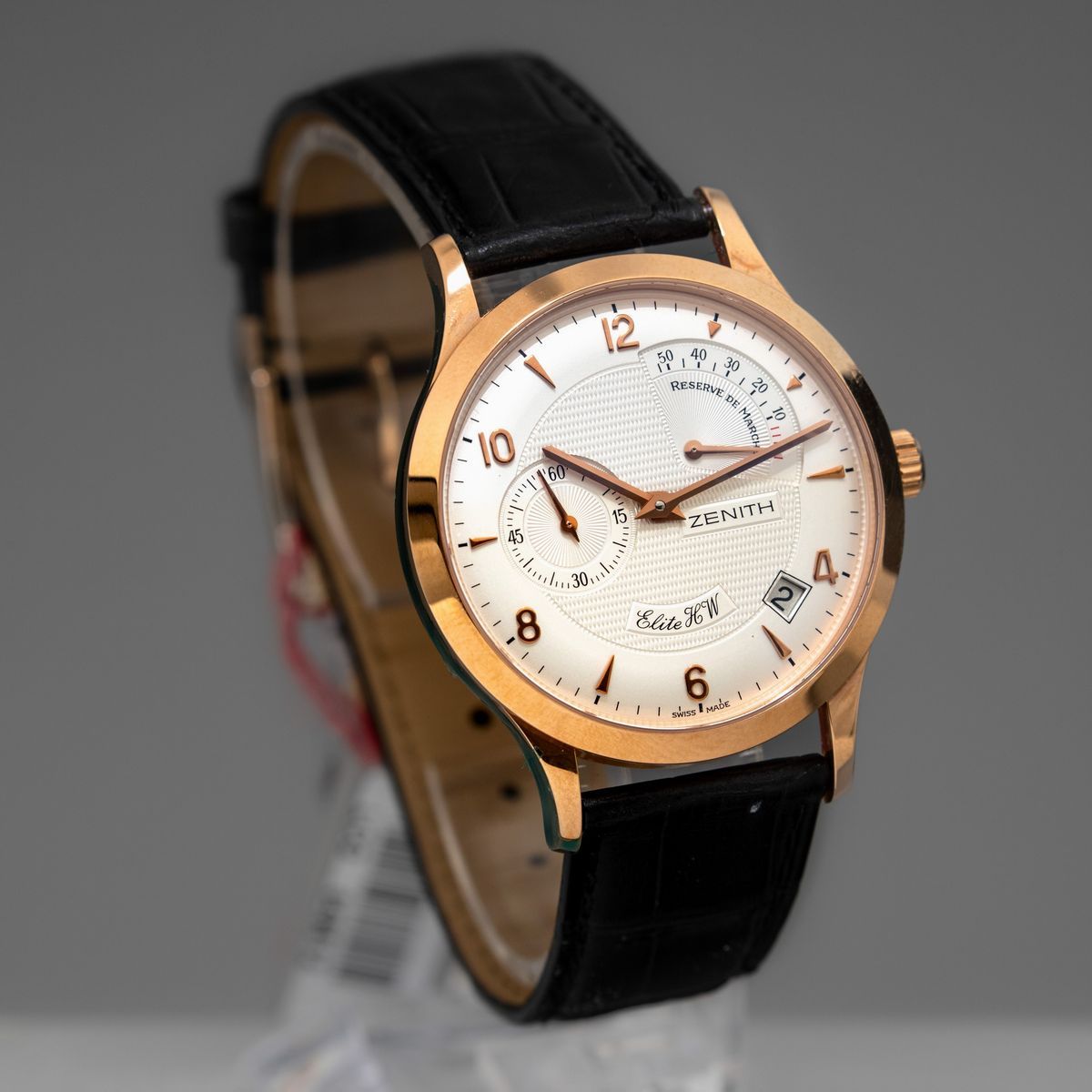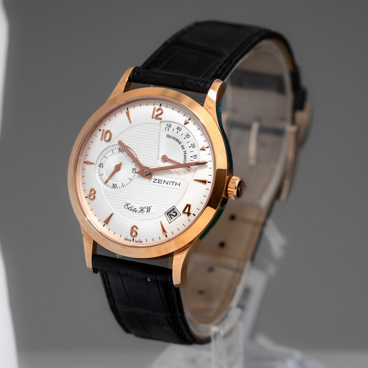 ZENITH - Elite HW oro rosa 18k con riserva di carica, datario e secondi al nove. Accompagnato da scatola originale e garanzia NOS