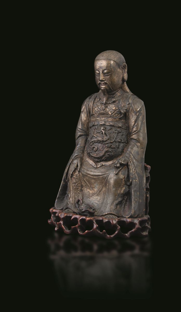 A bronze figure, China, Ming Dynasty 1600s. Traces of gilding