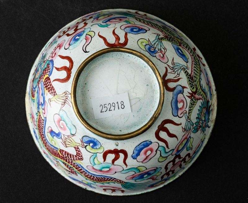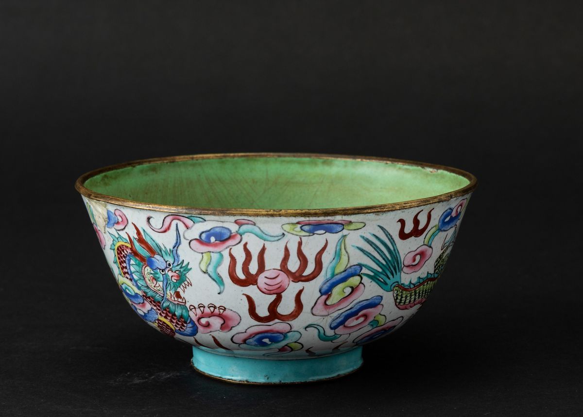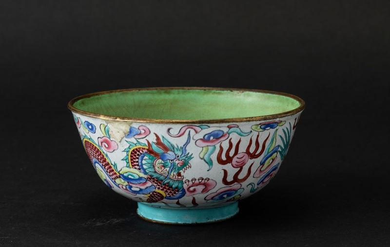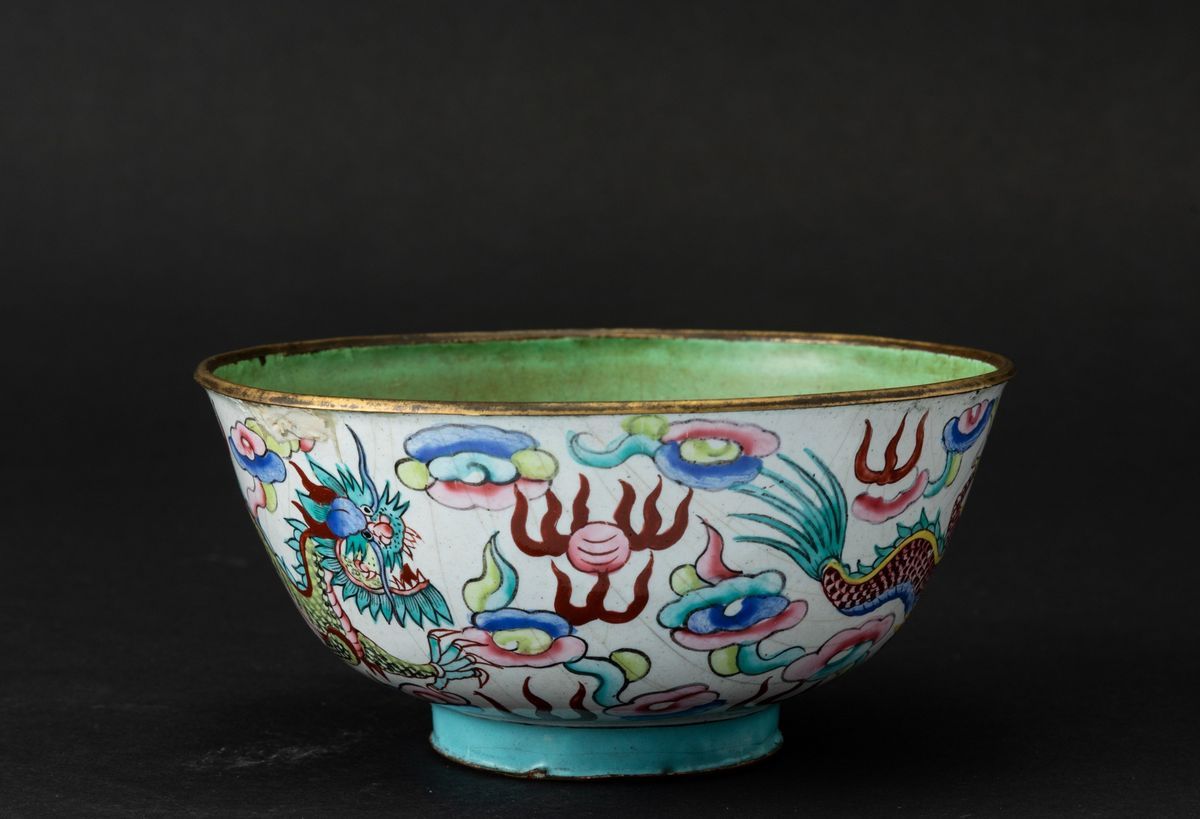 搪瓷绘龙纹碗 清 十九世纪
