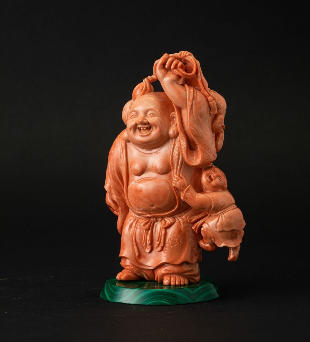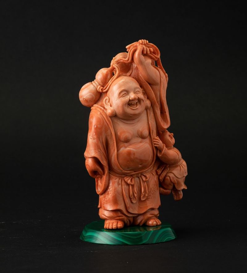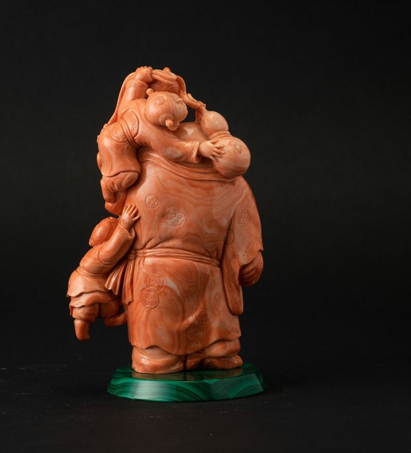A coral group on malachite base, China Early 1900s