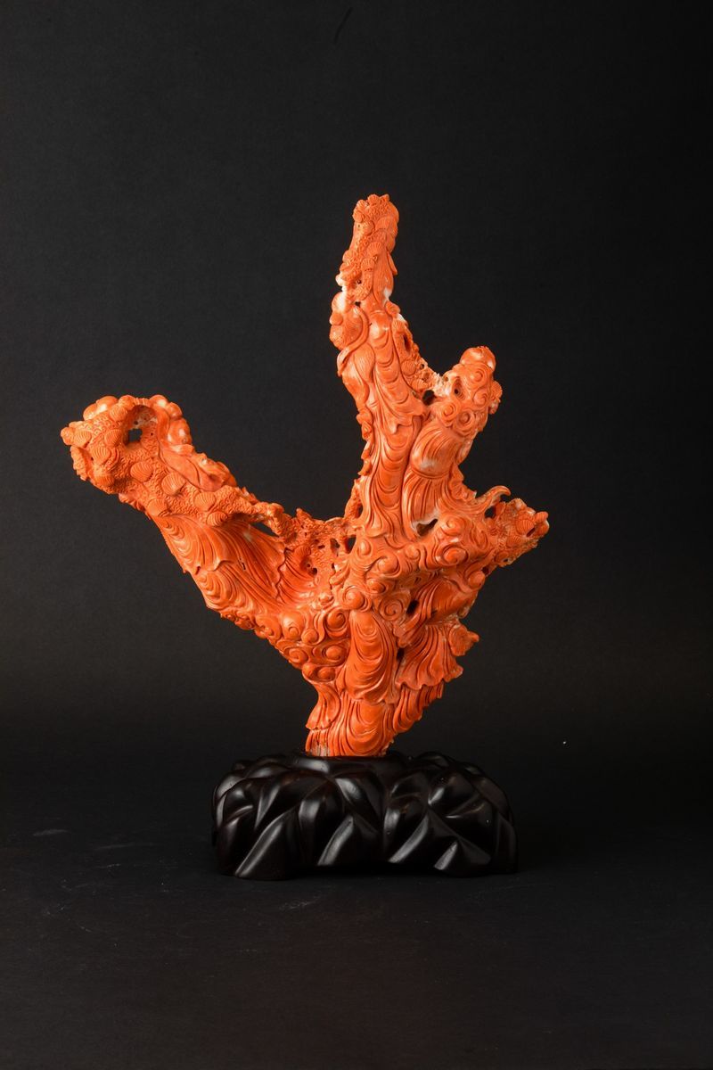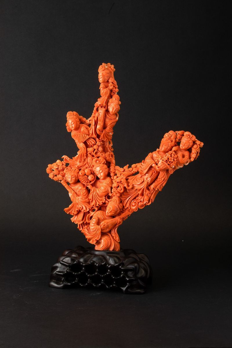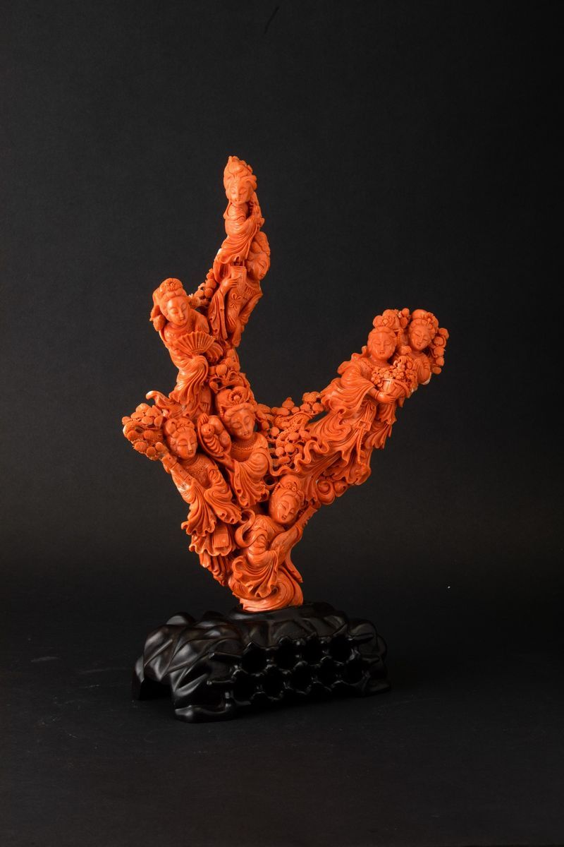 A large carved coral group, China, early 1900s