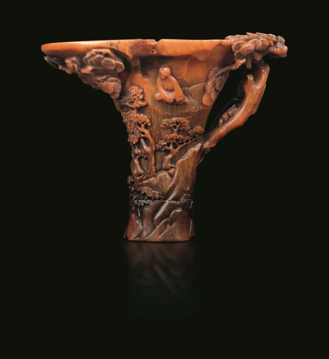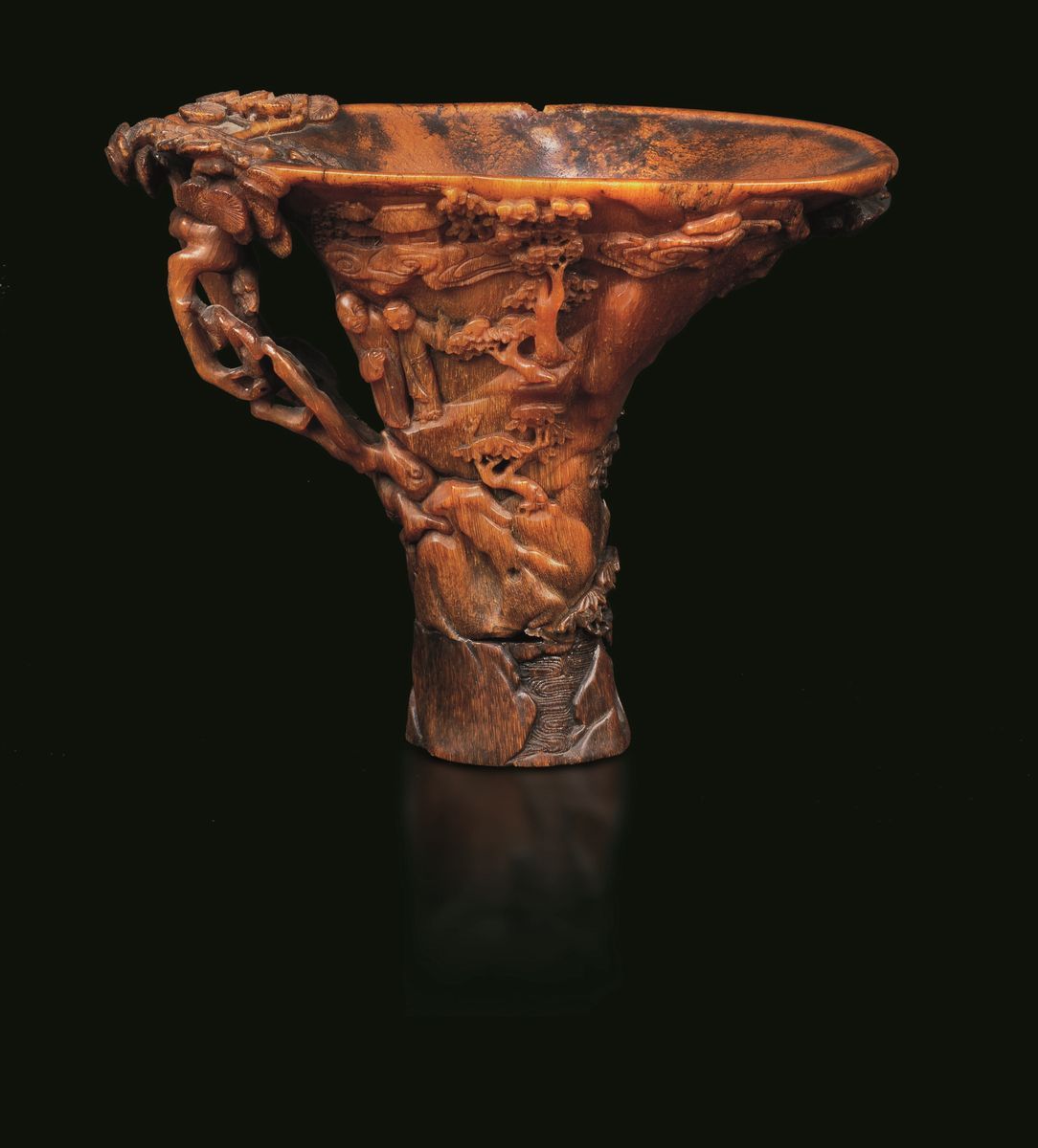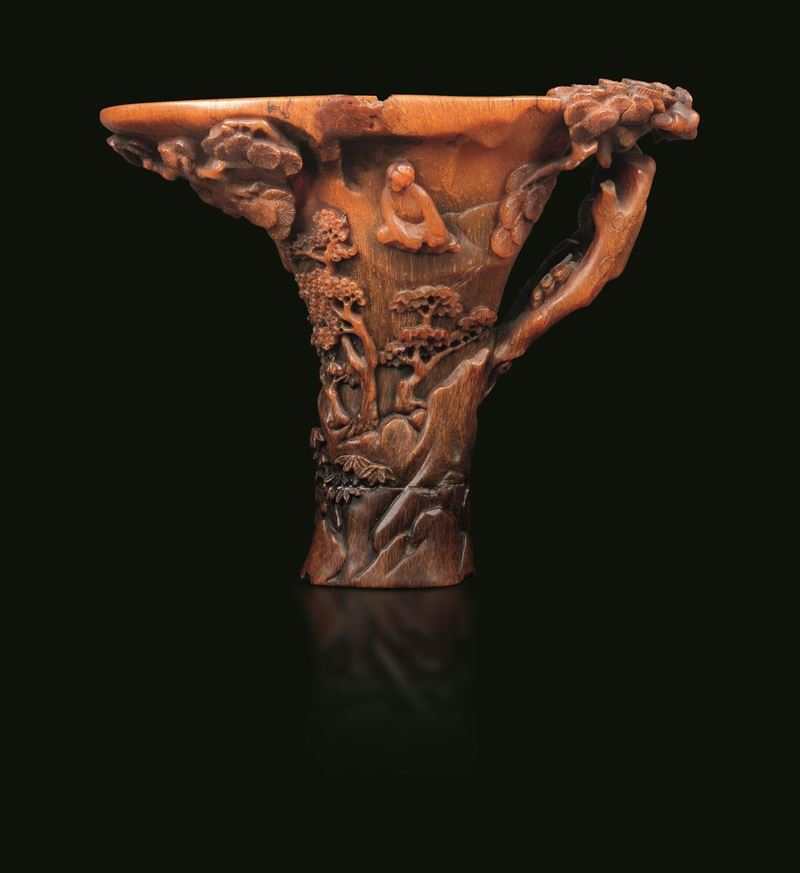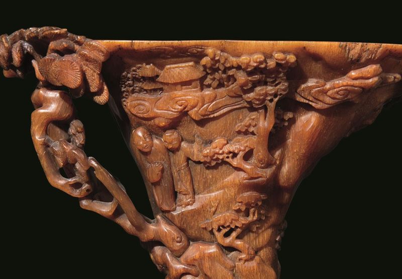 犀牛角风景纹爵杯 清 十七至十八世纪