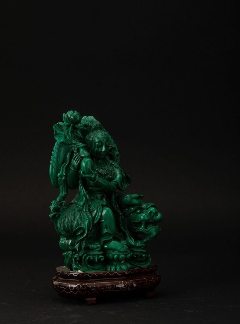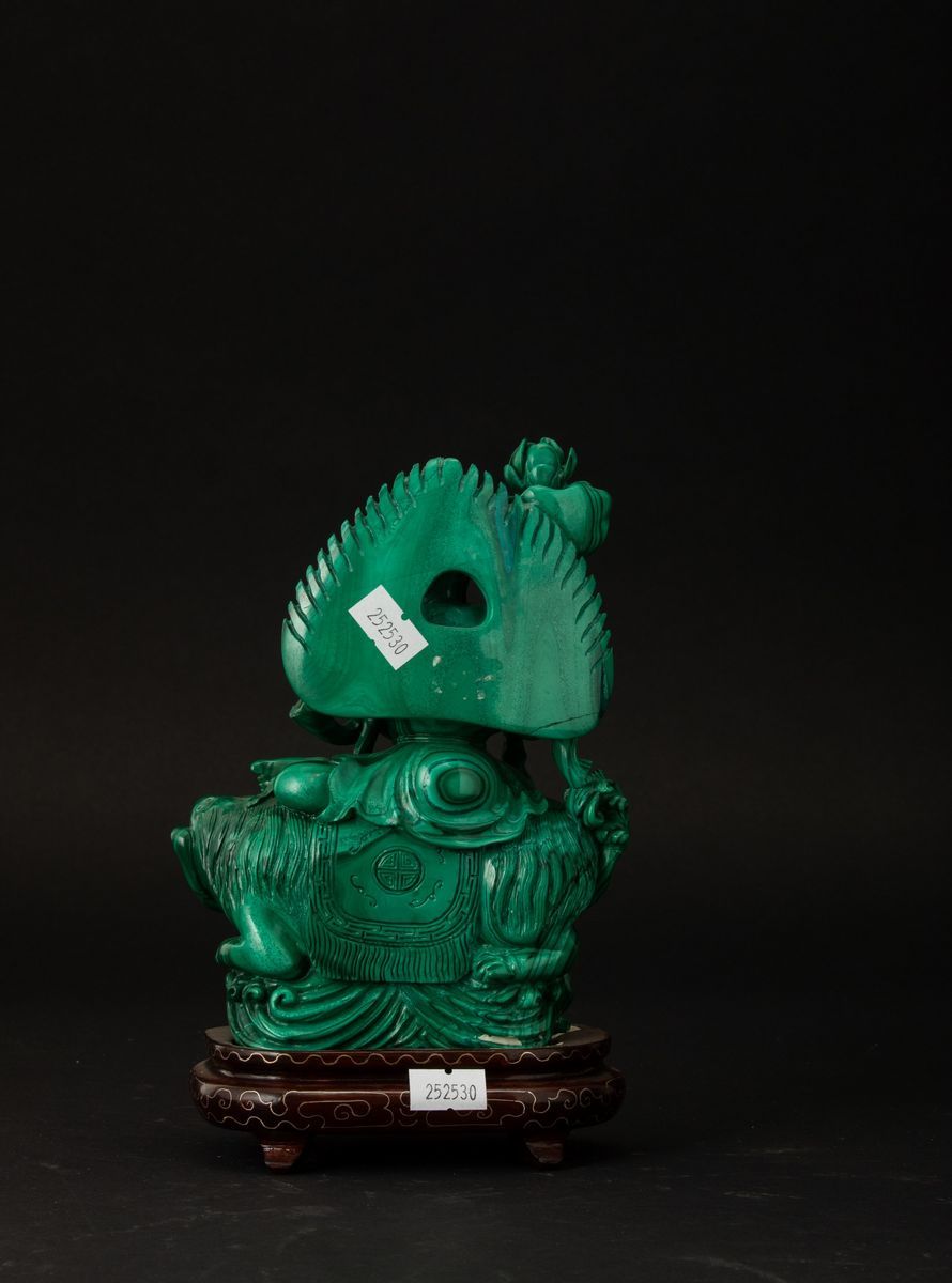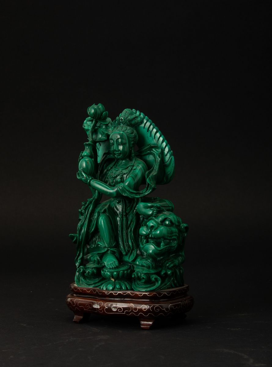 孔雀石雕狮吼文殊坐像 中华民国 二十世纪