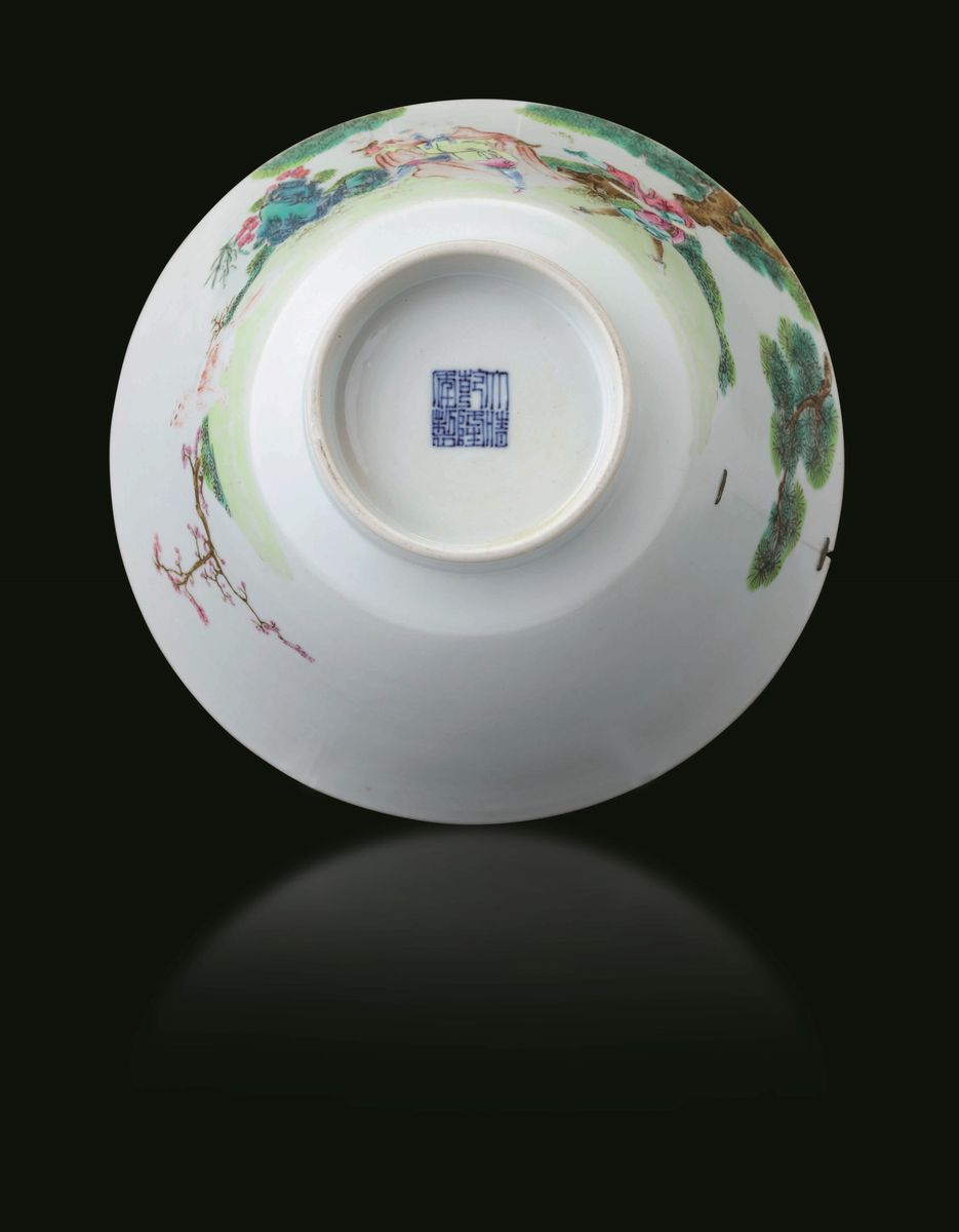 A porcelain bowl, China, Qing Dynasty, 1800s Apocryphal Qianlong mark