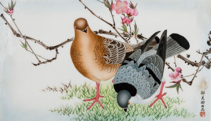 斗彩绘信鸽瓷板 中华民国 二十世纪