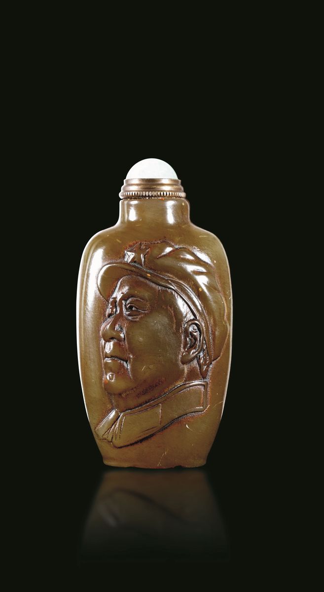 黄玉雕毛泽东像鼻烟壶 中国 二十世纪