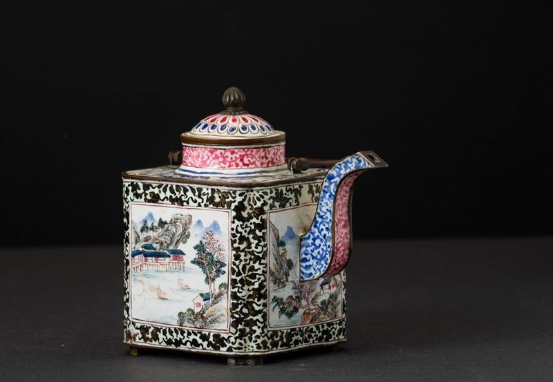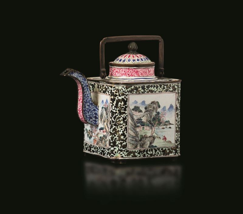 An enamel teapot, China, Canton, Qing Dynasty Jiaqing period (1796-1830)