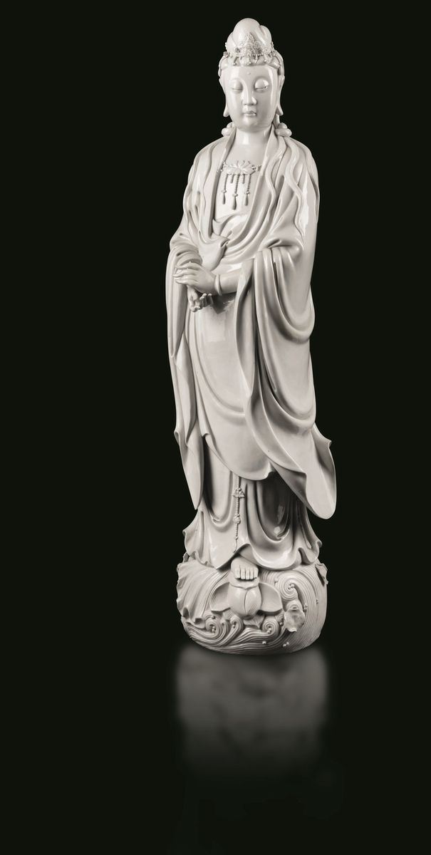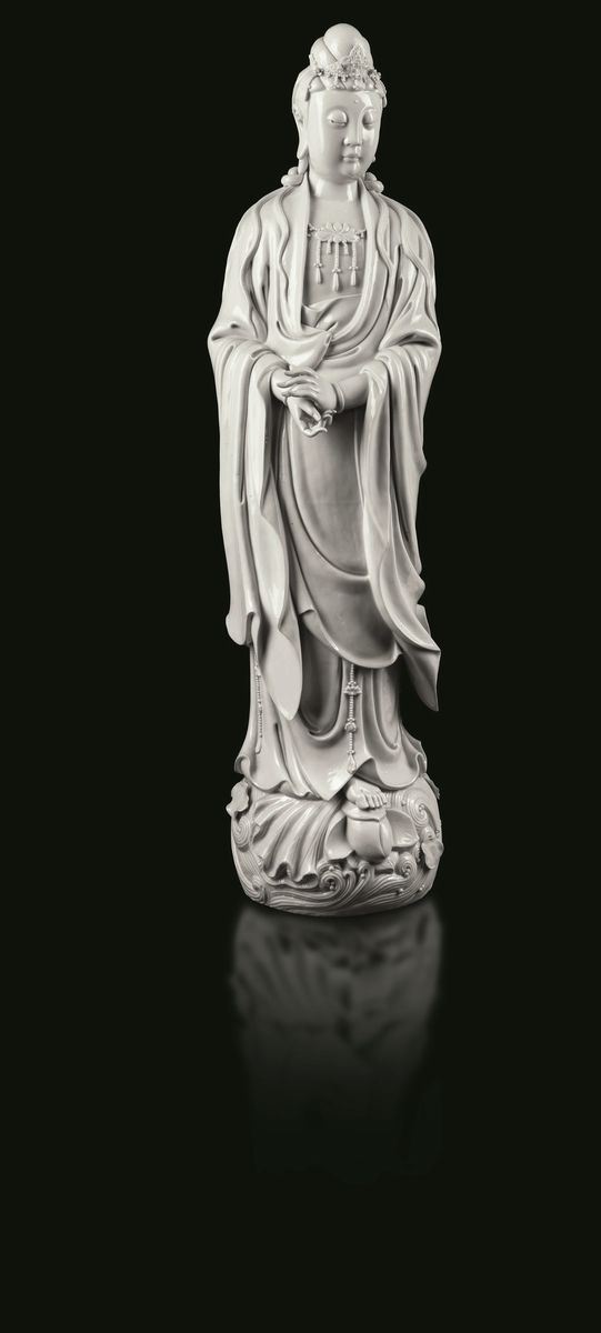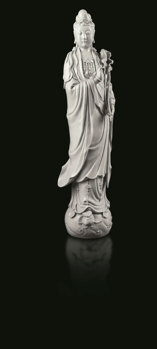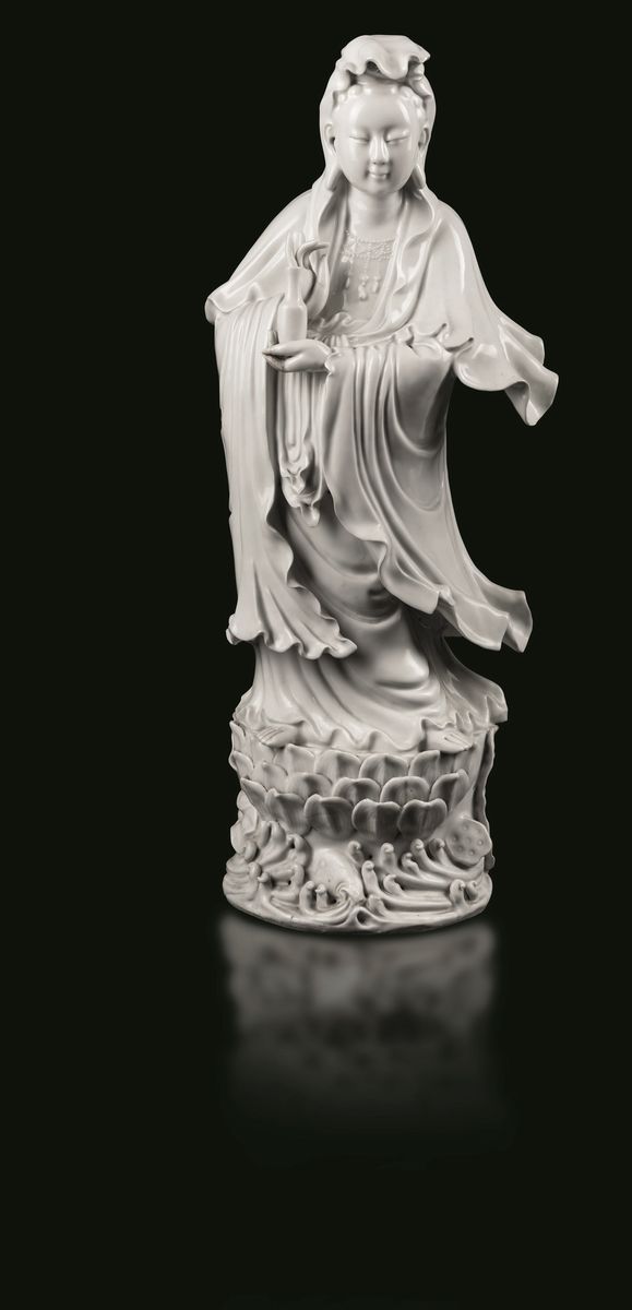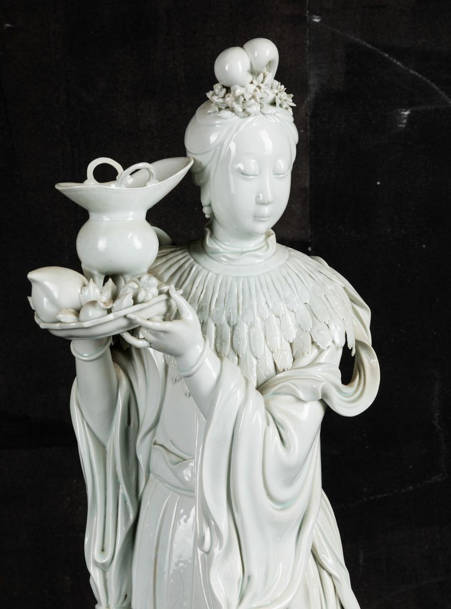 Three Blanc de Chine porcelain figures, China Qing Dynasty, 1800s