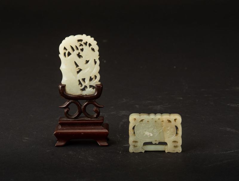 Two Celadon jade plaques, China, Qing Dynasty 1800s