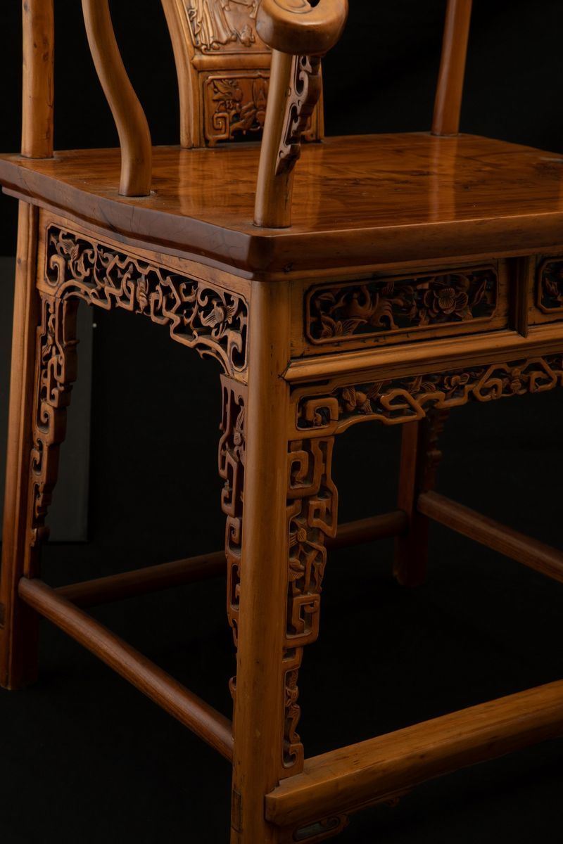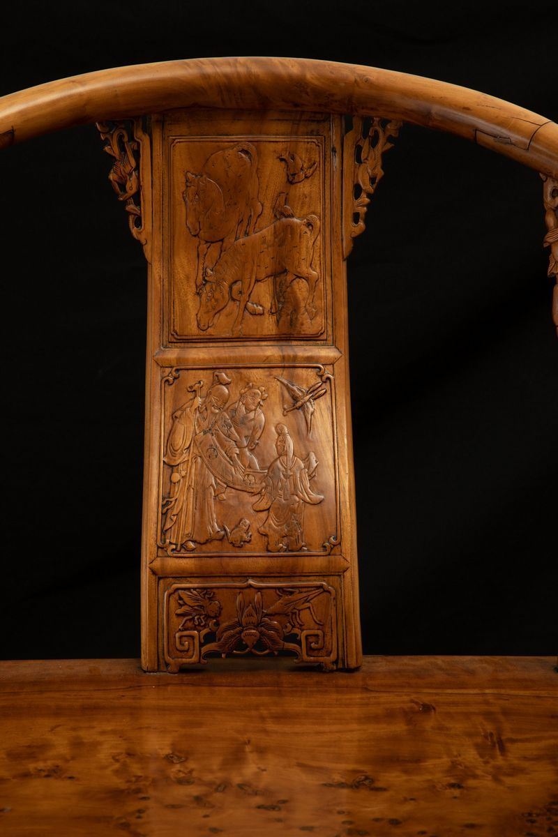 Two Huali and root wood chairs, China, 1800s Qing Dynasty