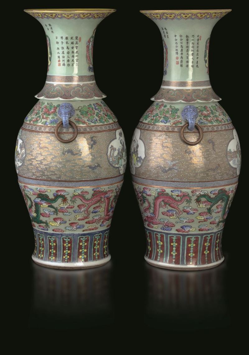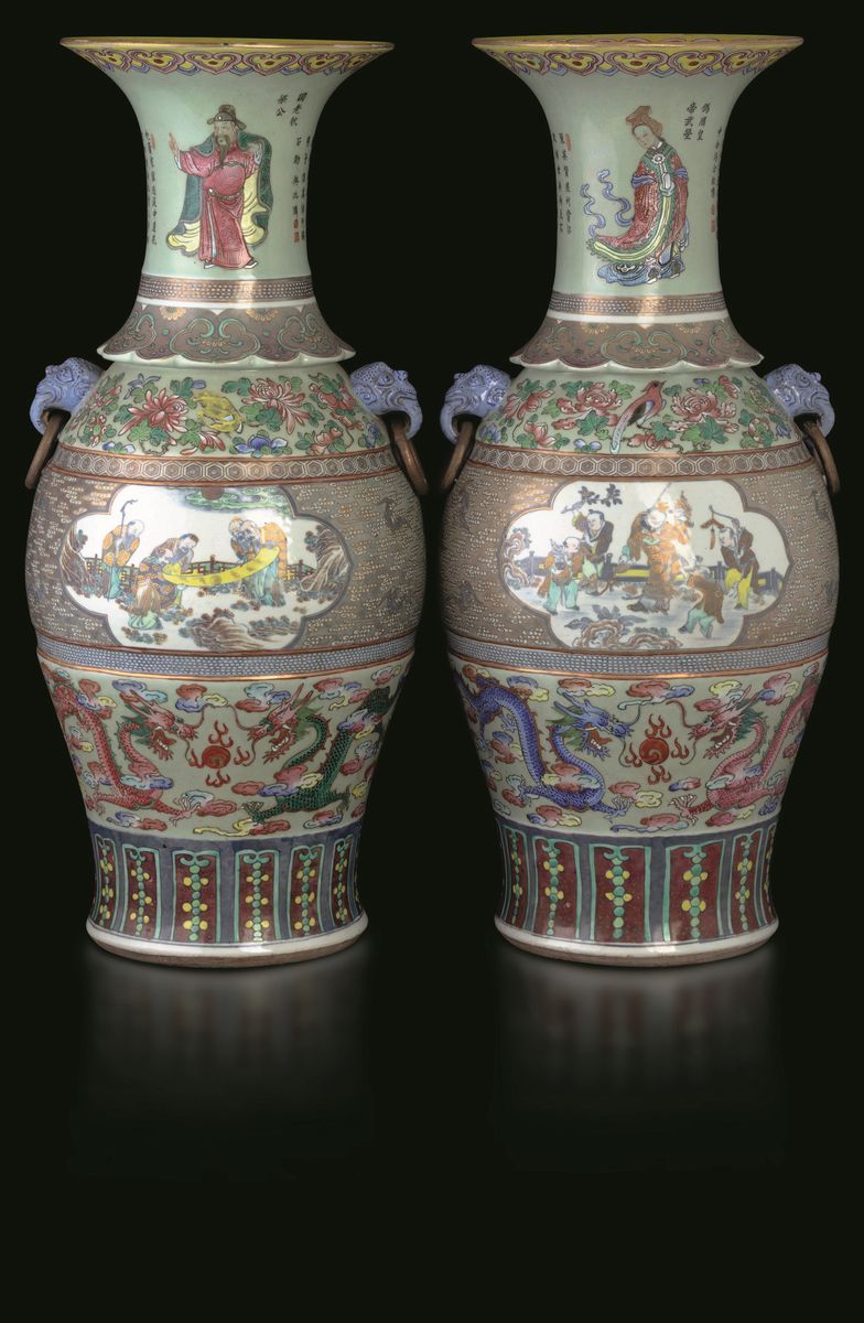 Two large porcelain vases, China, Qing Dynasty