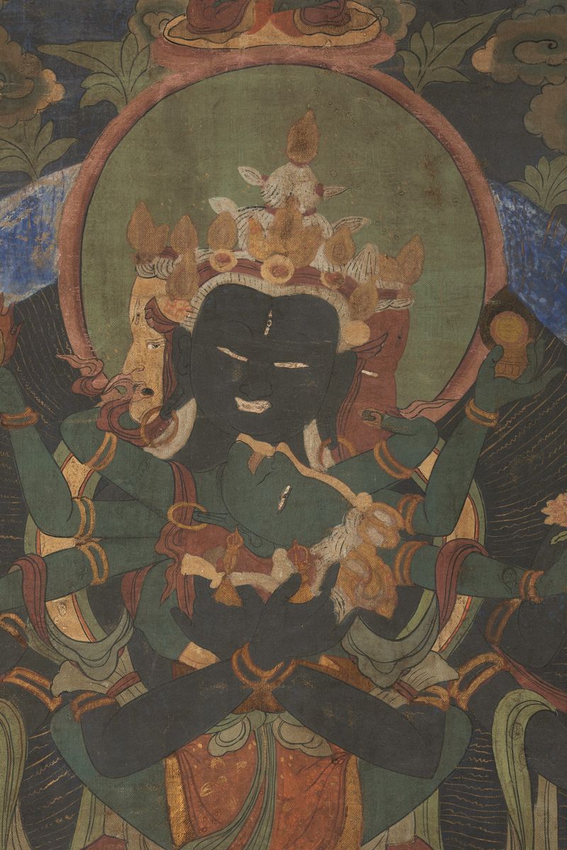 大威德金刚,胜乐金刚与金刚亥母两幅唐卡 西藏 十九世纪