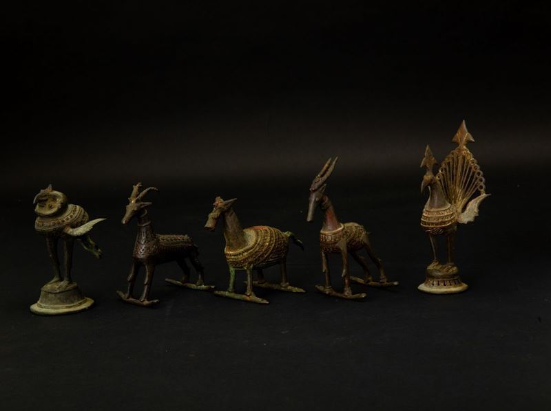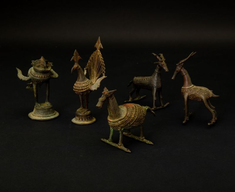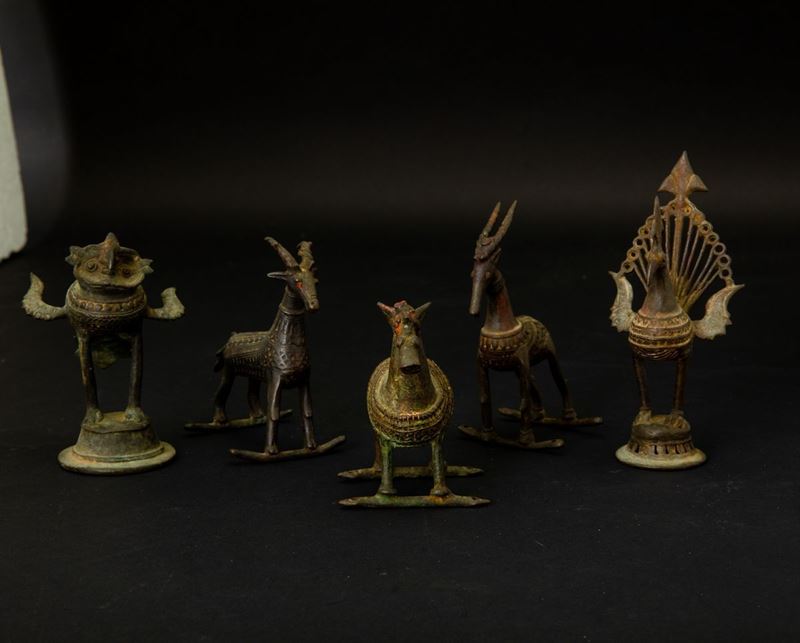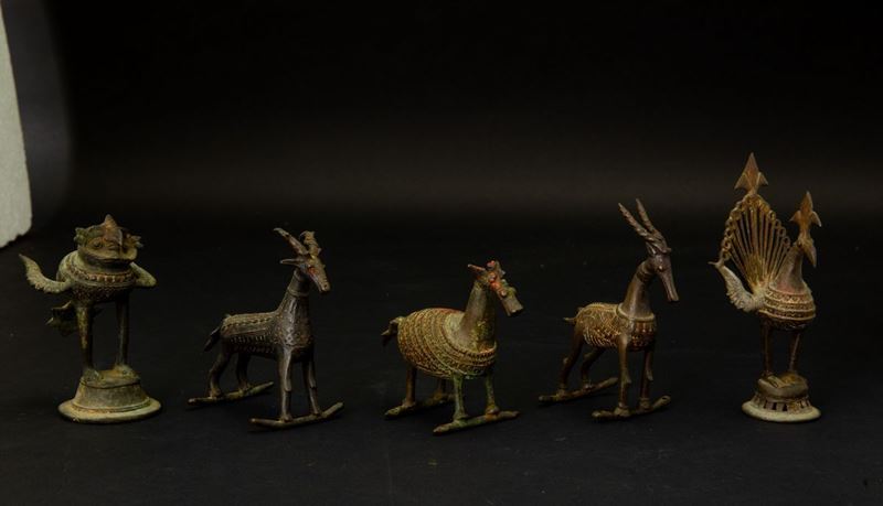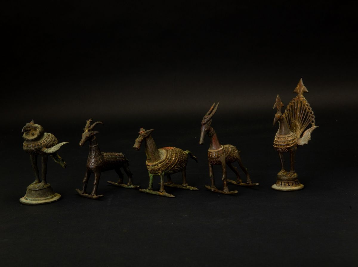Five bronze animals, India, 17/1800s