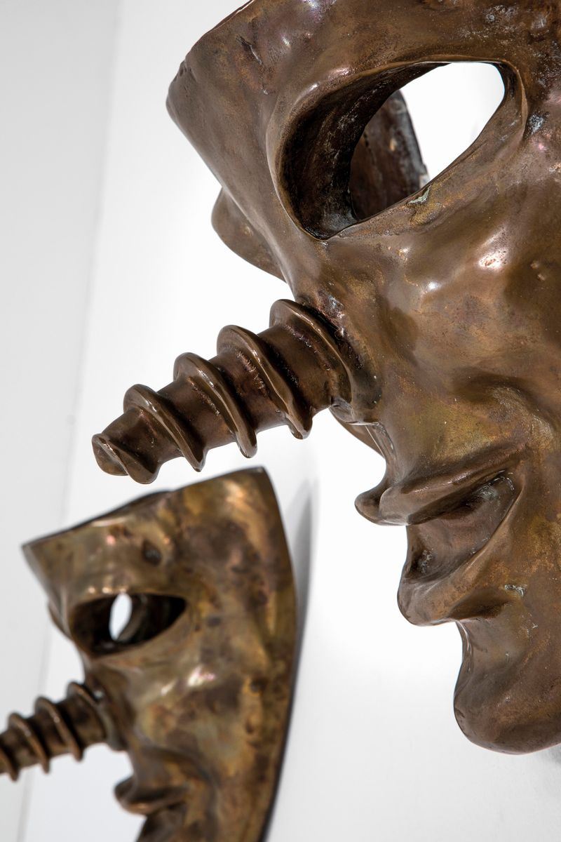 Pair of bronze artworks mod. Mask for wall sconces.