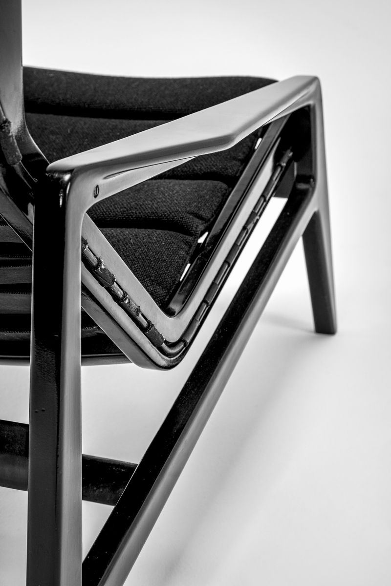 Lacquered wooden frame and back with elastic bands. Upholstered in fabric. Certificate of authenticity - Lisa Licitra Ponti.