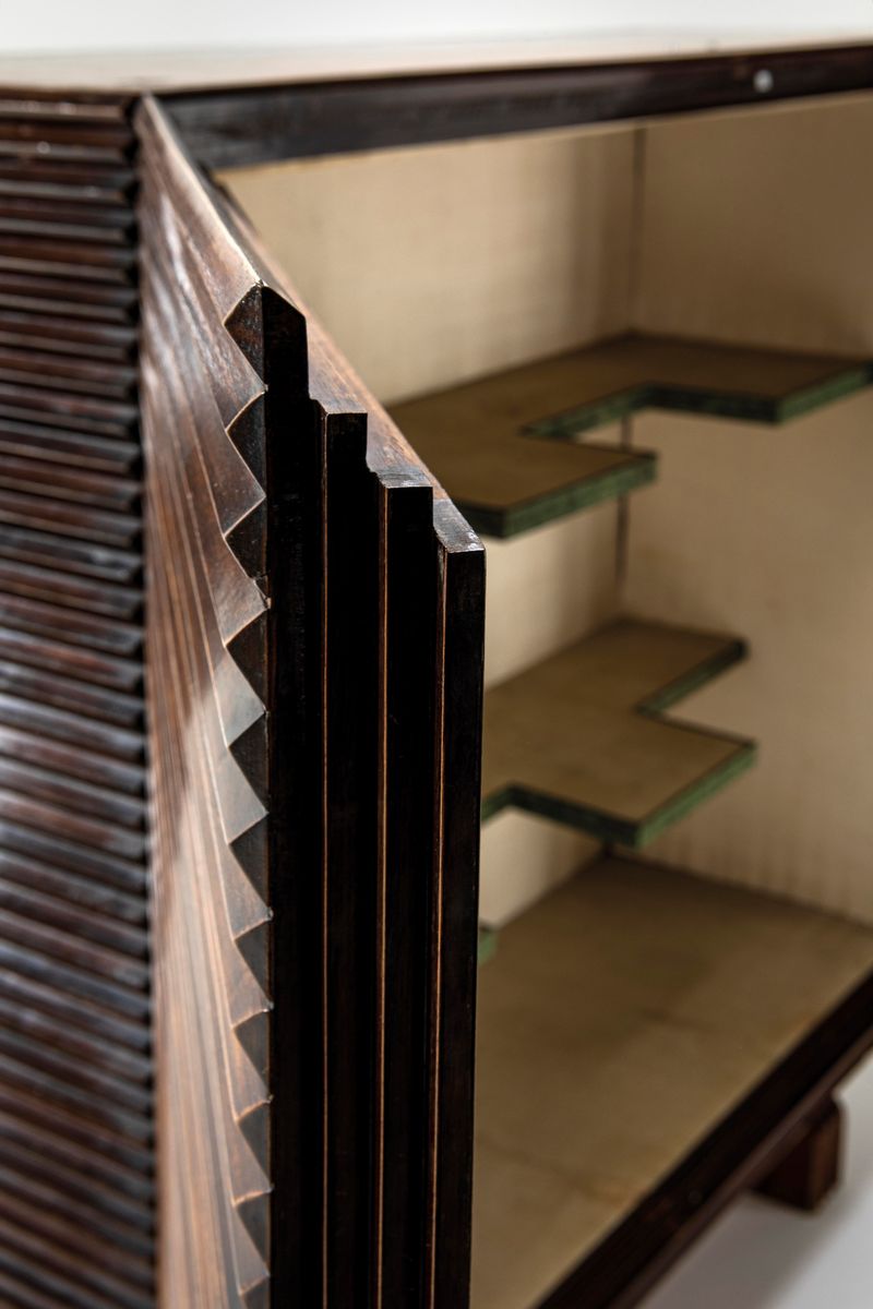 with wooden frame, diamond-carved wood panelling and brass handles. Presented at the Paris Exhibition of 1937. Certificate of authenticity - Lisa licitra Ponti Colombo e Vitali, Italy, 1937