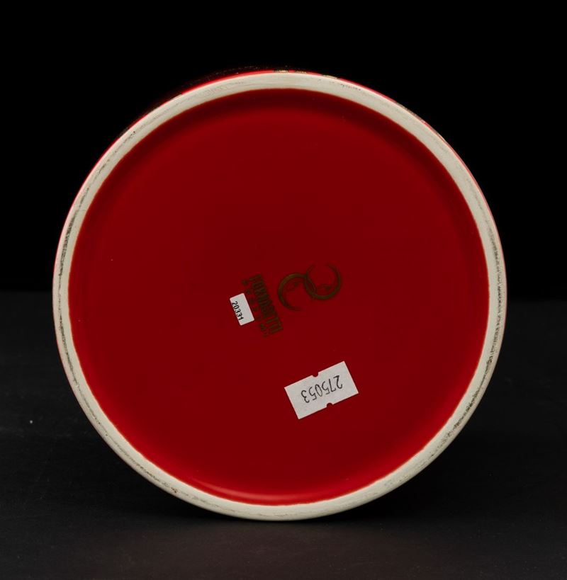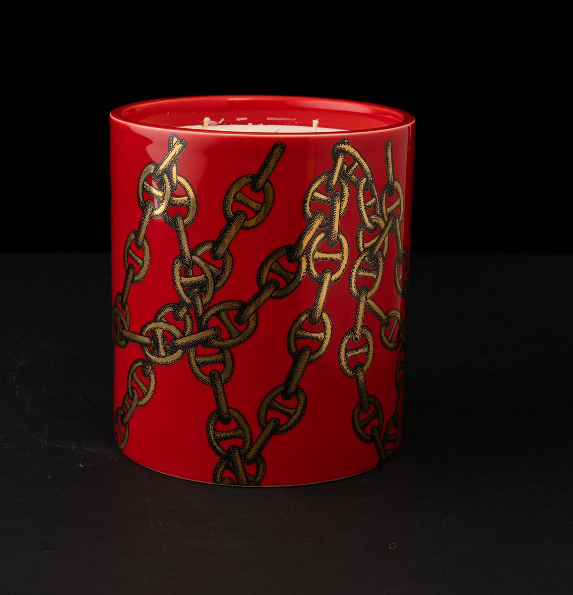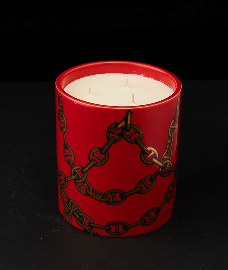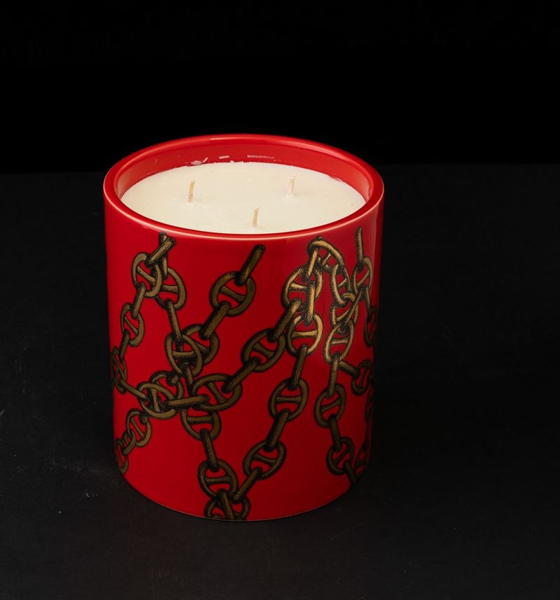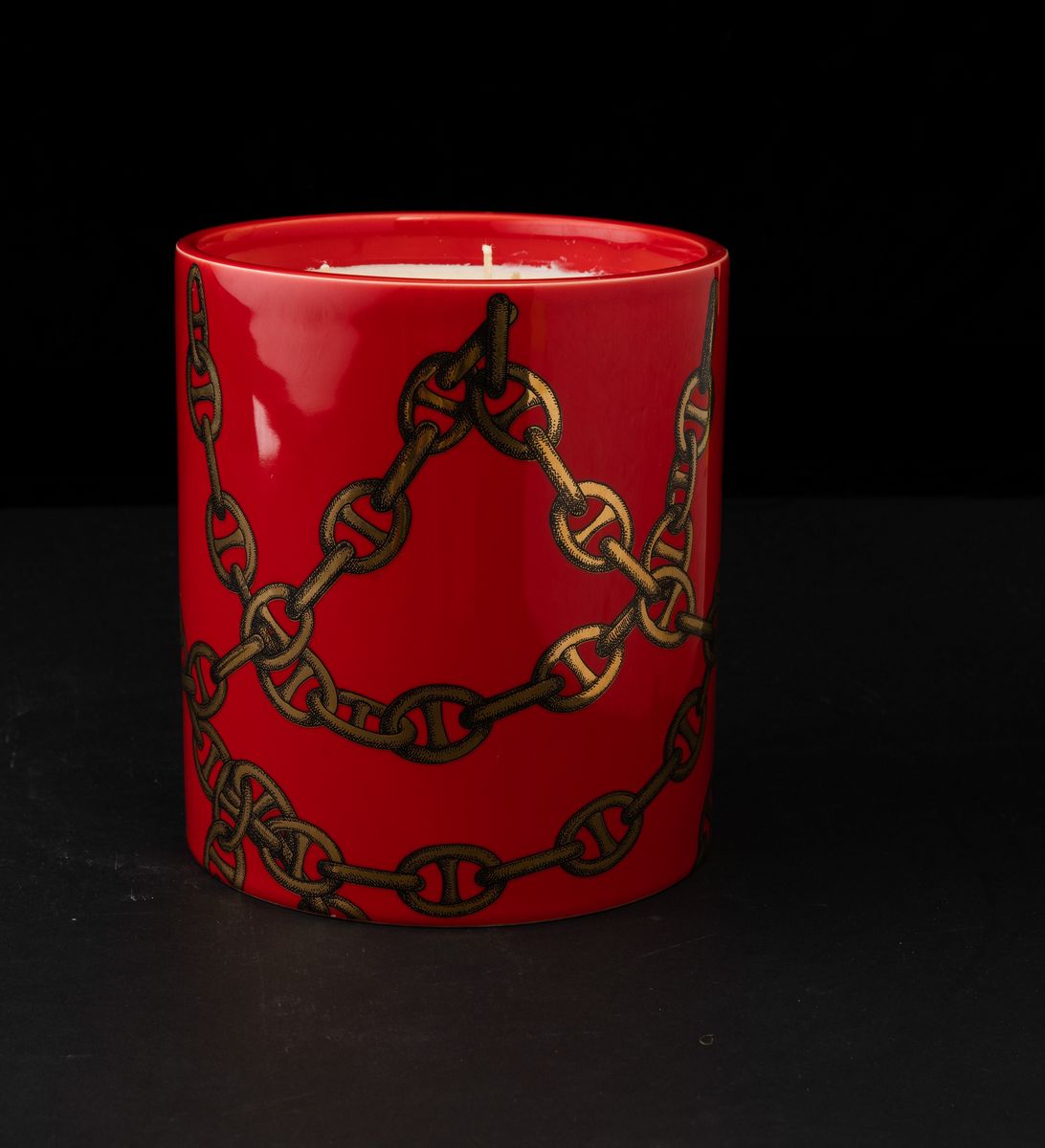 Candle Grandi Catene in red ceramic with gold decoration.