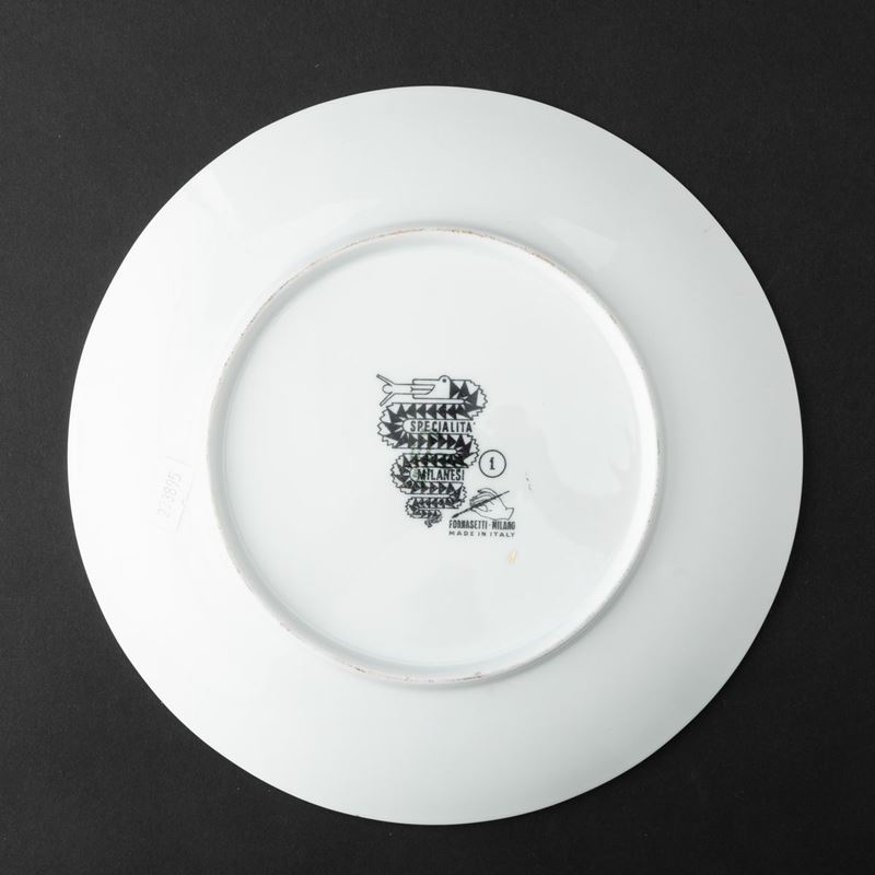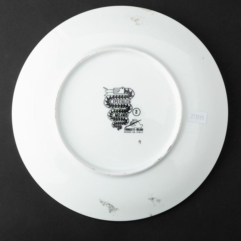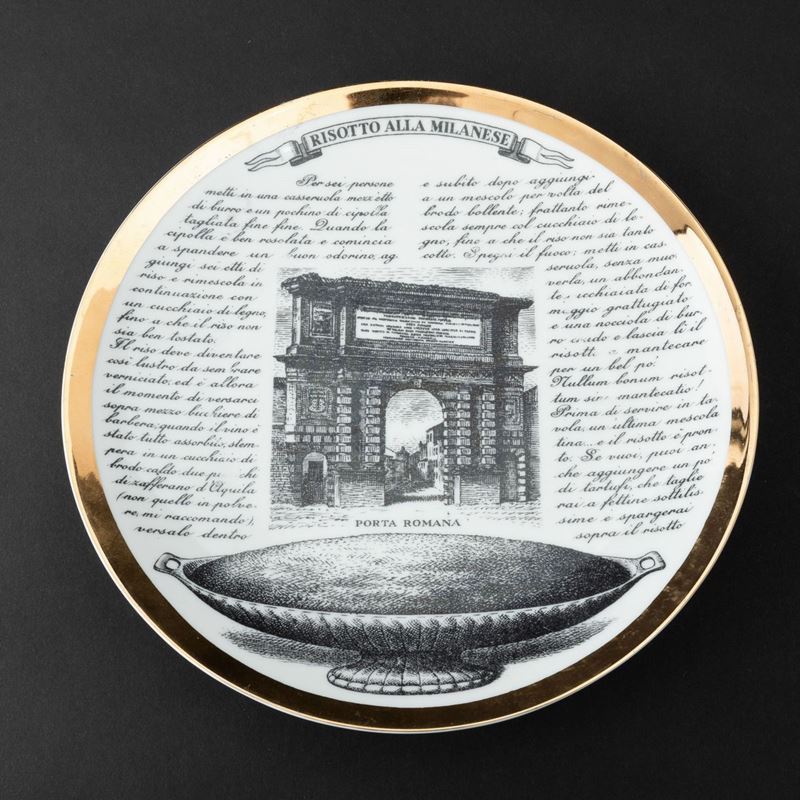 Lot of two plates Specialità Milanesi in screen printed porcelain and gilded edge.