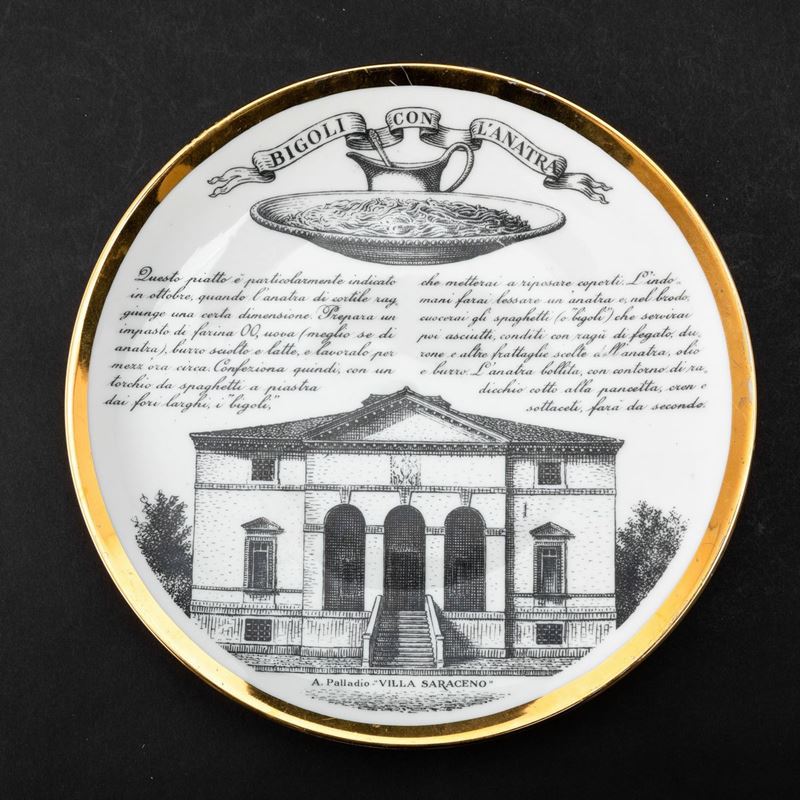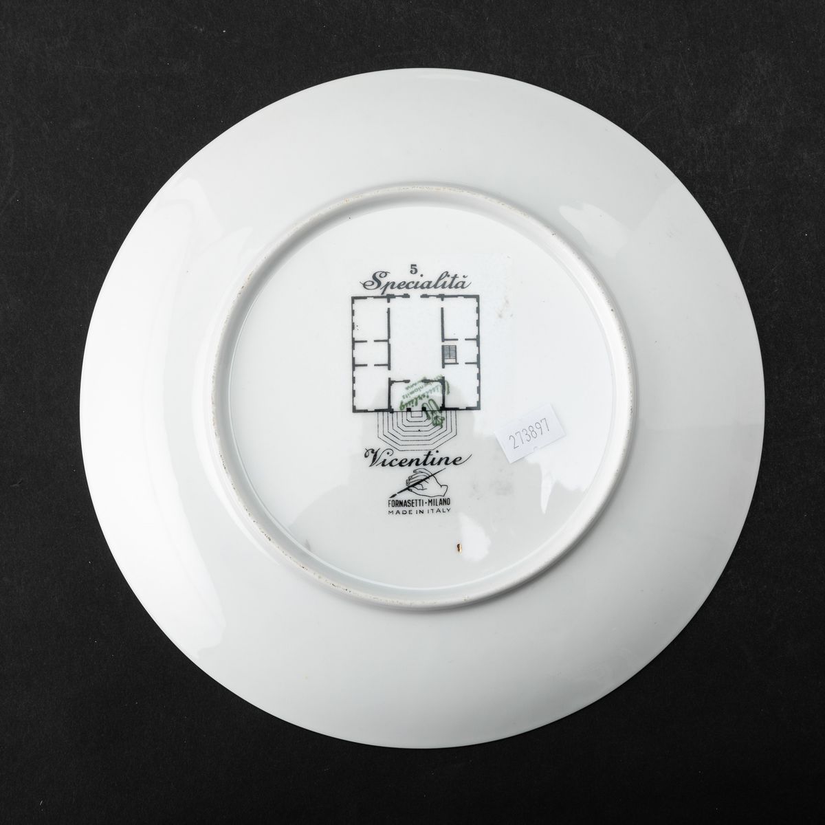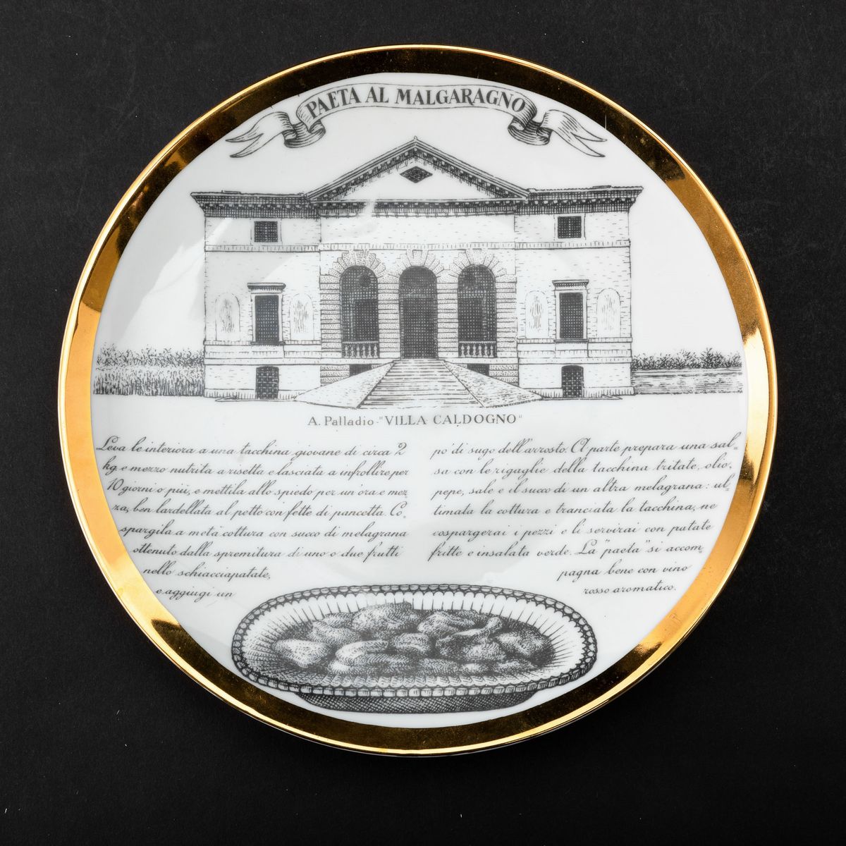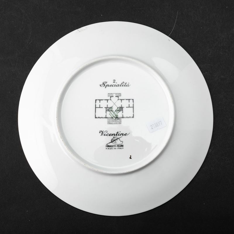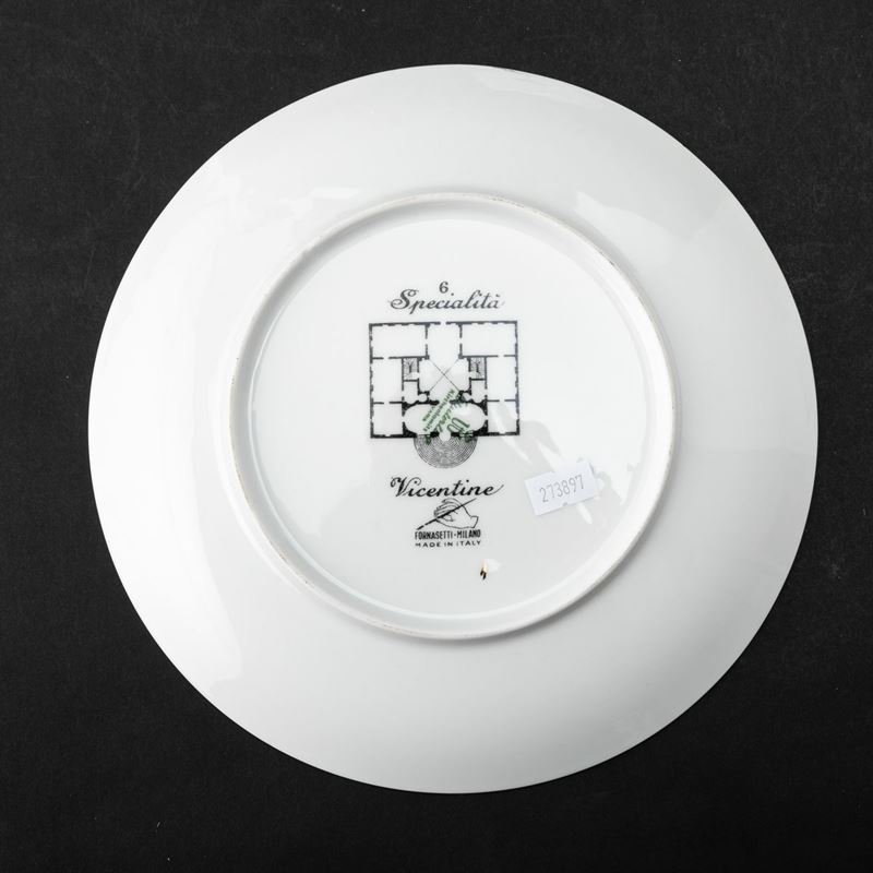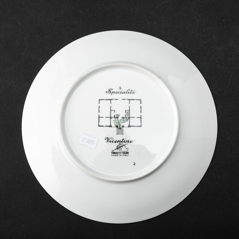 Lot of four plates Specialità Vicentine in screen printed porcelain and gilded edge.