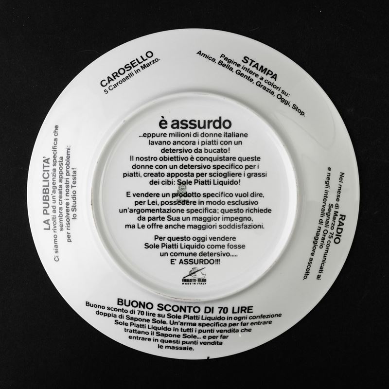 Plate È Assurdo in screen printed porcelain.