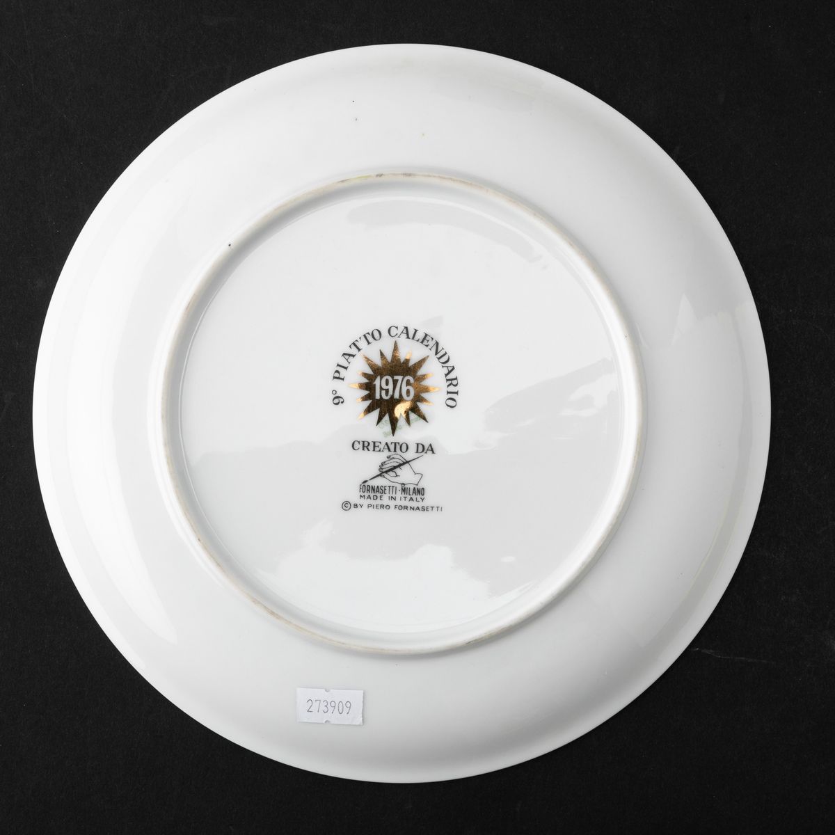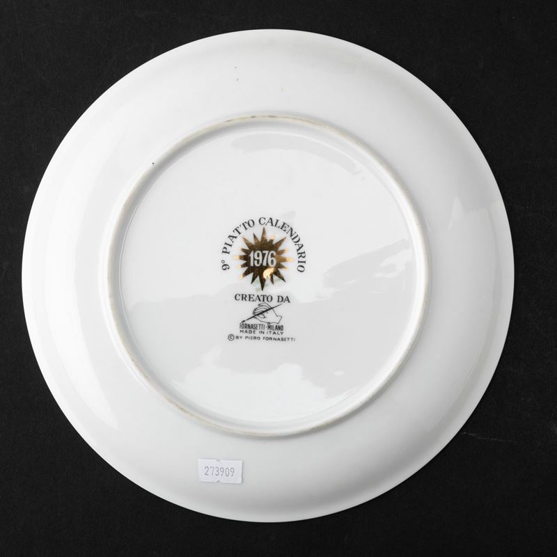 Plate Calendario in screen printed porcelain decorated with gilded insert.