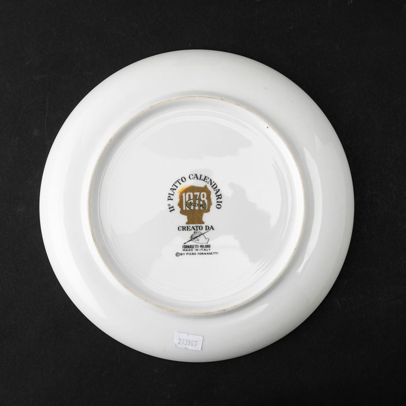 Plate Calendario in screen printed porcelain decorated with gilded insert.