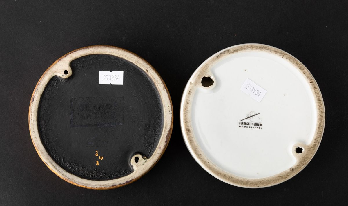 Lot of two porcelain pocket emptier, one with screen printed decor, the other Grande Antico.