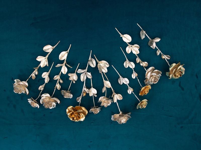 11 silver and vermeil rose branches, Boggiali, Milan, 20th century