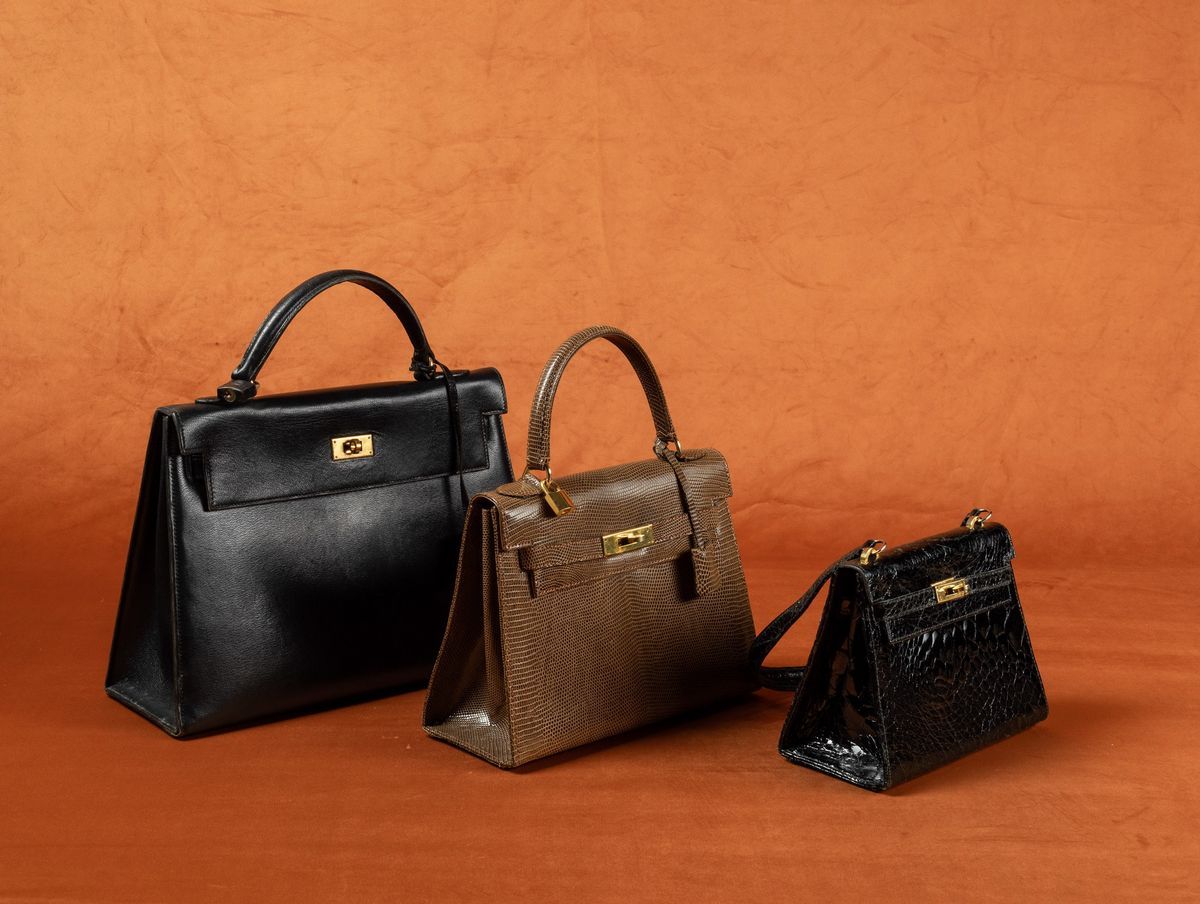 Together with a replica of a Kelly-style bag made by Cellerini Firenze and an unlabelled replica of a Kelly-style bag in reptile-print leather.