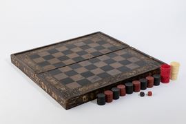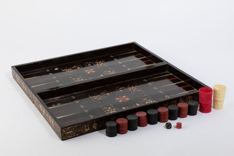 With backgammon and checkers. Lacquered wood and chinoiserie decors.