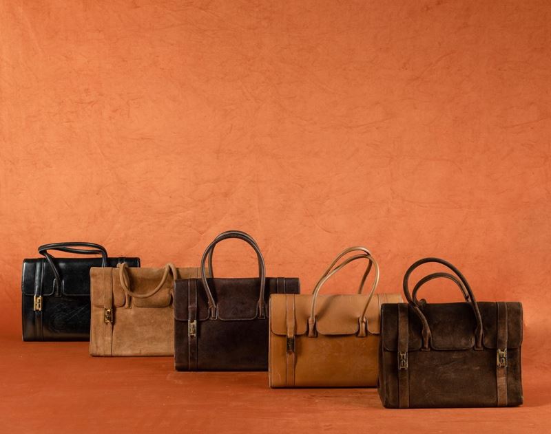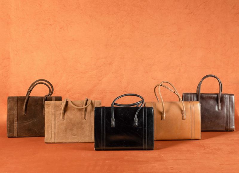 Together with four reproductions of the bag made by Cellerini Firenze in other materials and types of leather.