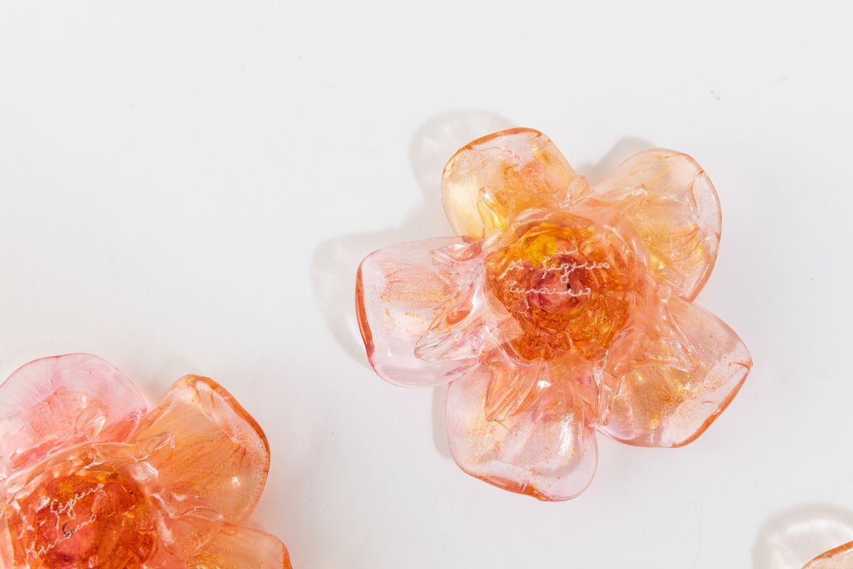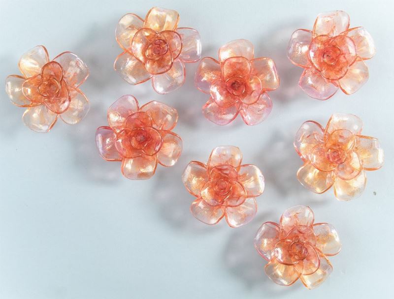 Eight blown glass flowers with a gold leaf decor