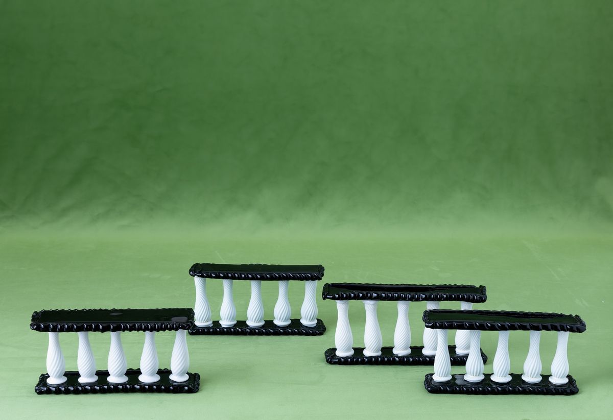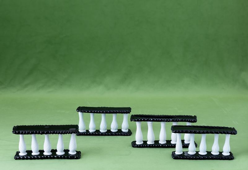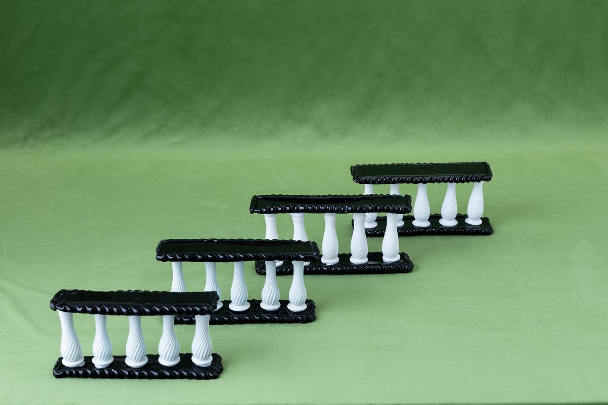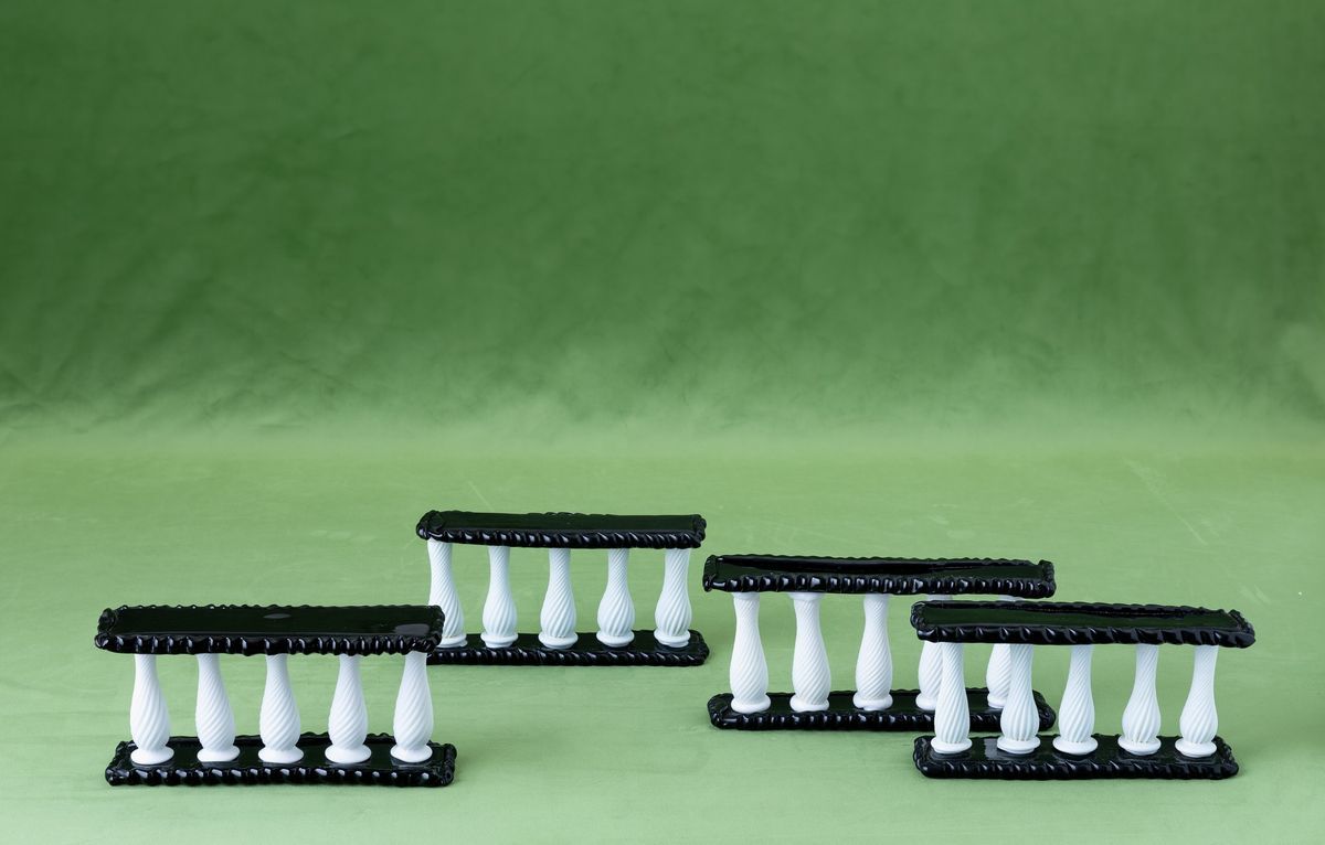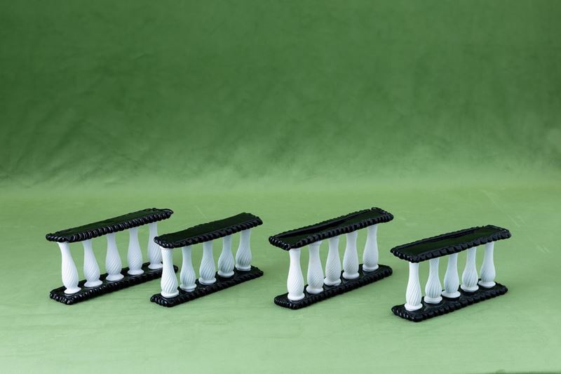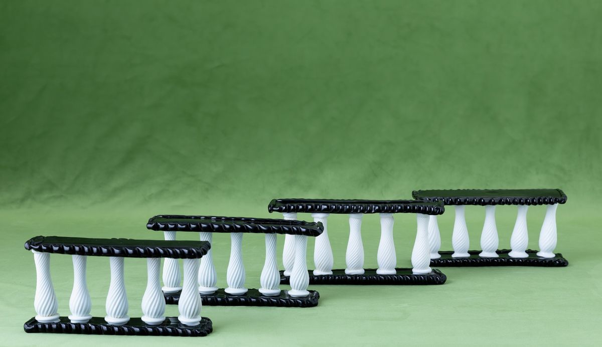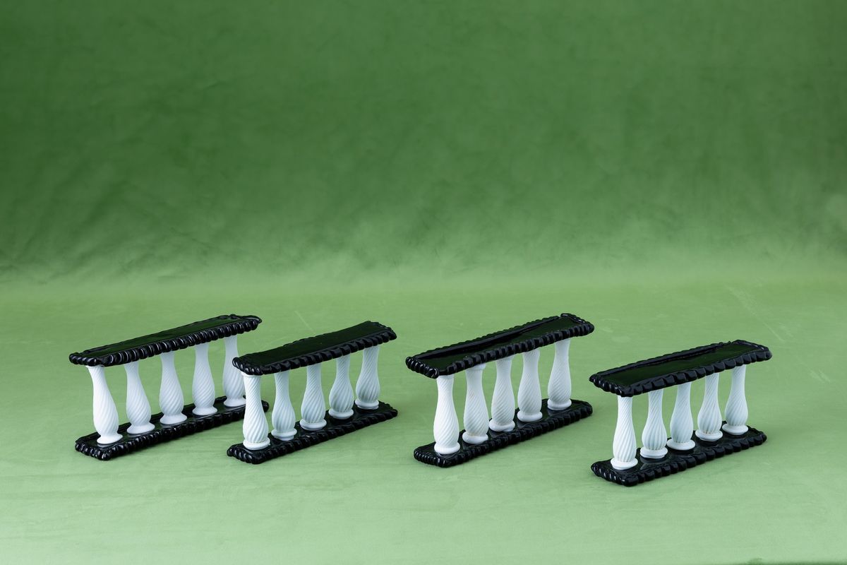 Four glass centrepieces. Broken parts