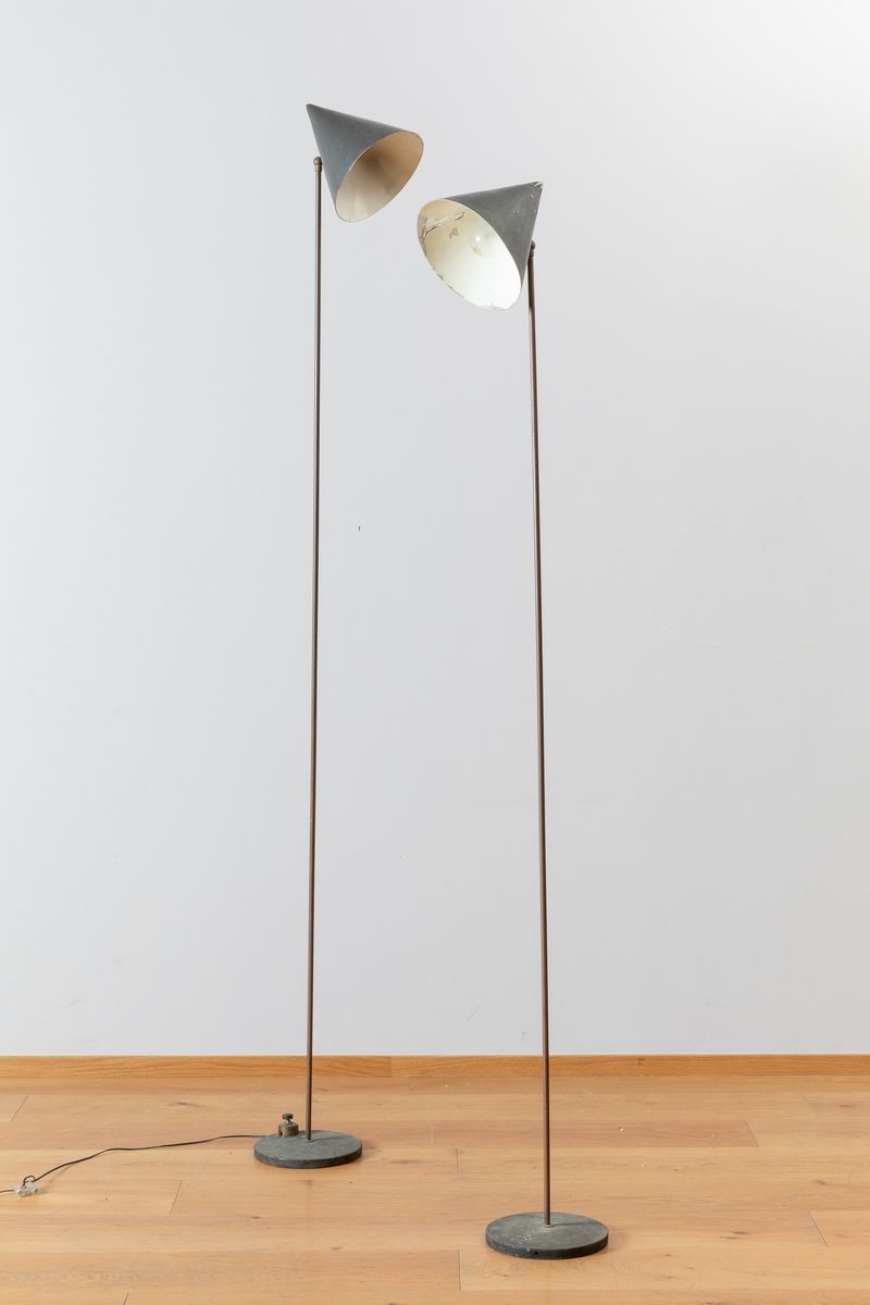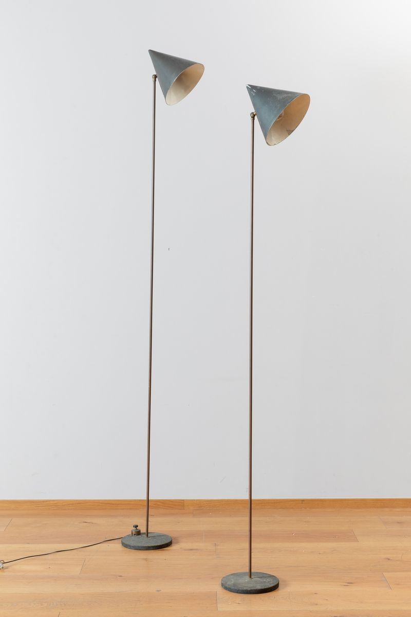 Two brass floor lamps with cast iron bases