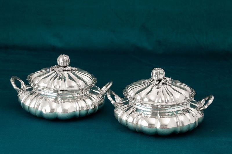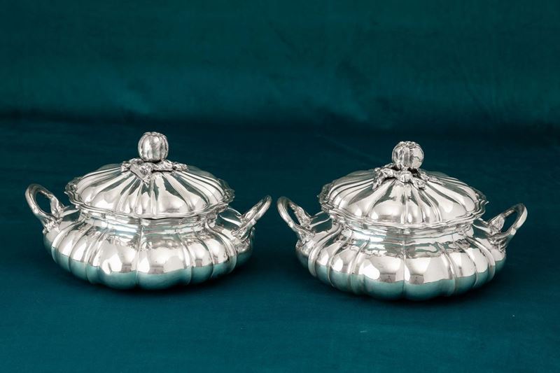 Two silver tureens, Alessandria, 20th century
