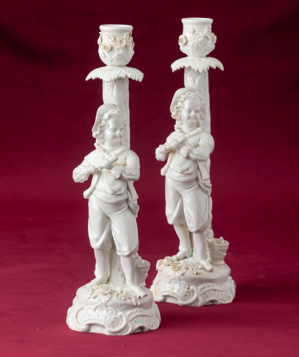 Two white porcelain candle holders, Germany, Rudolstadt, Ernst Bohme Söhne, 1880-1920s