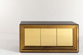 Grande credenza mod. Cirus in radica di legno e ottone.