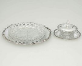 Antipastiera e formaggiera in argento e vetro. Argenteria italiana del XX secolo